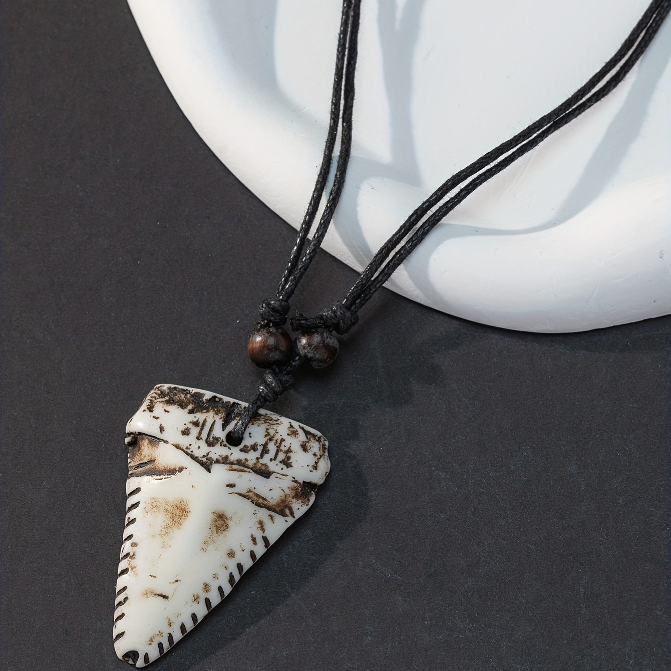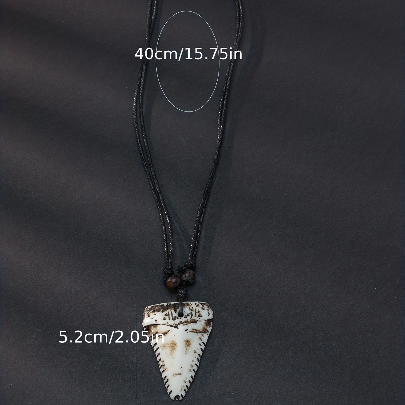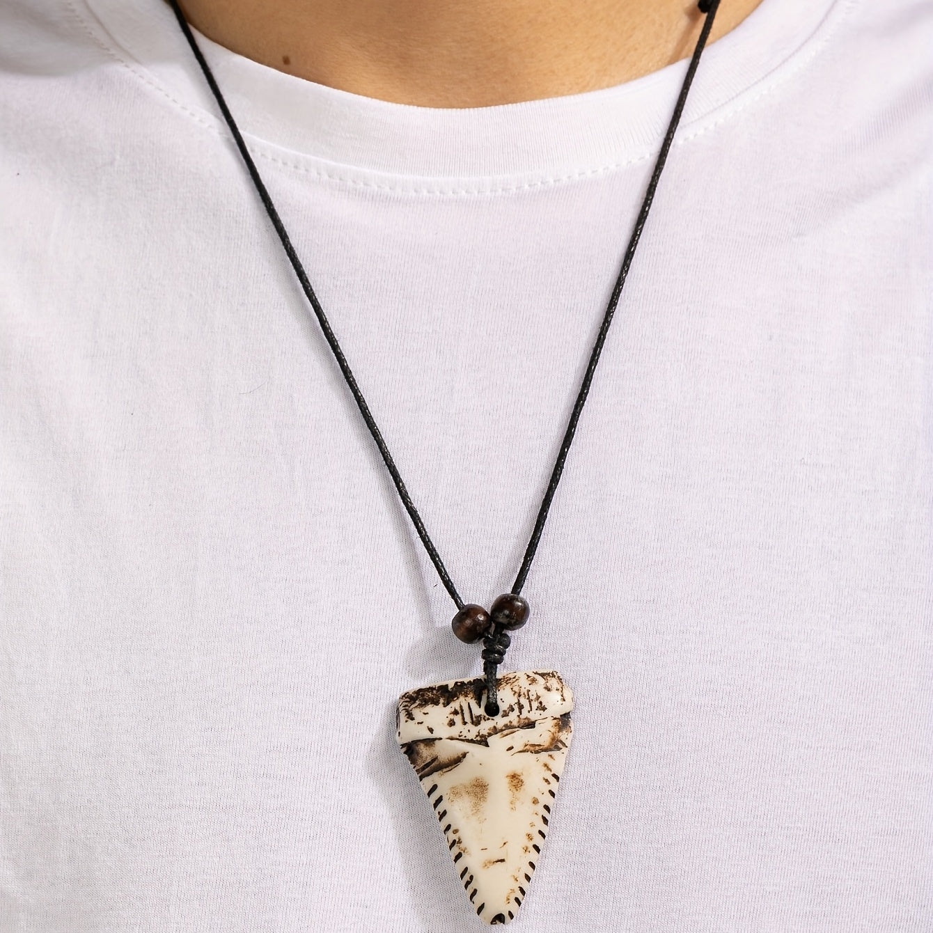 This men's necklace features a big shark teeth pendant on a retractable braided chain, exuding a vintage charm.