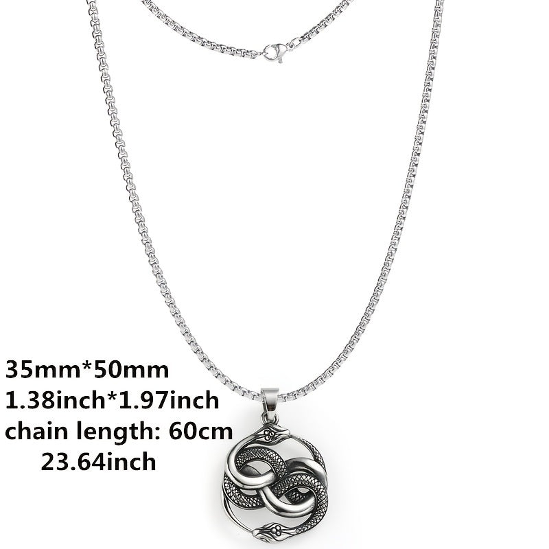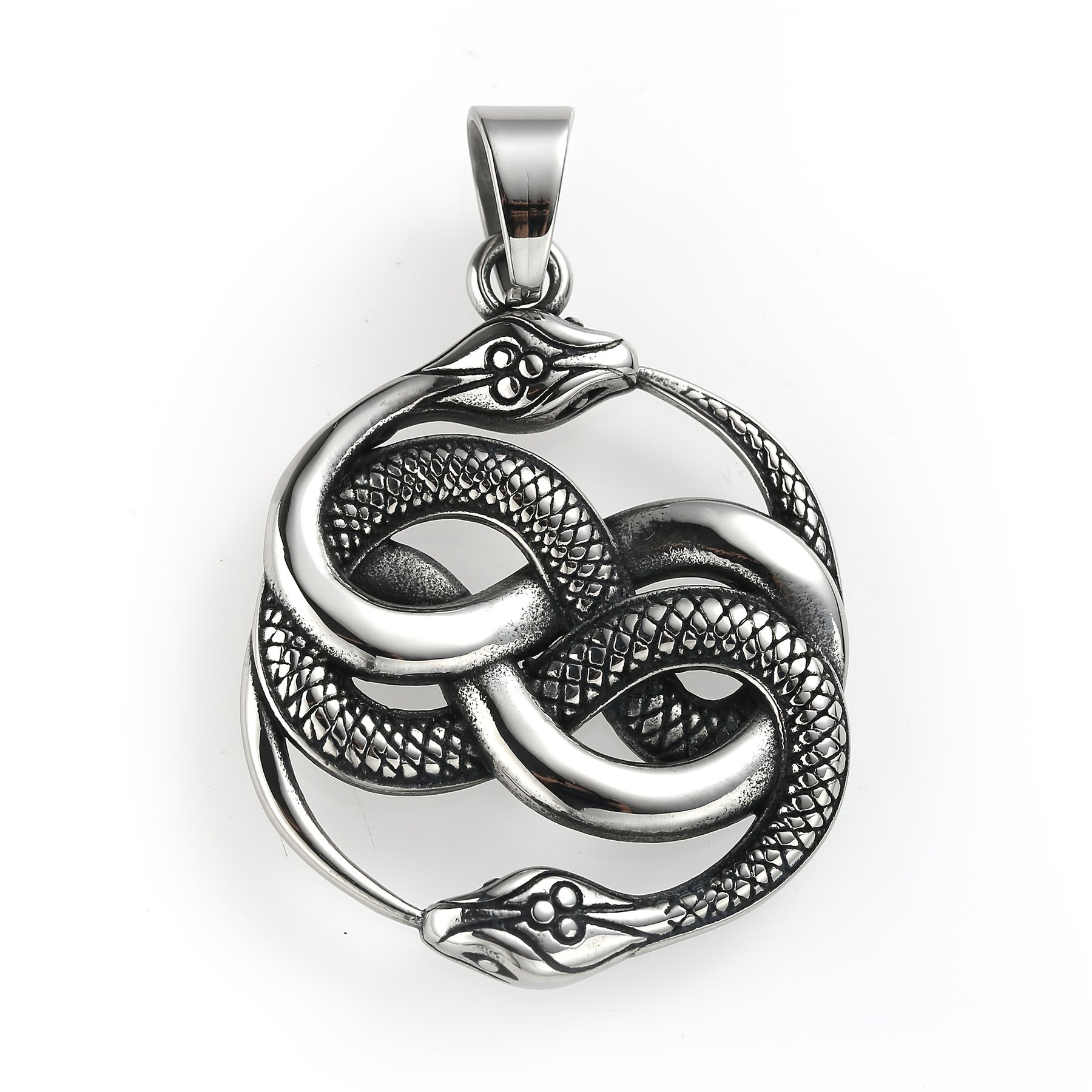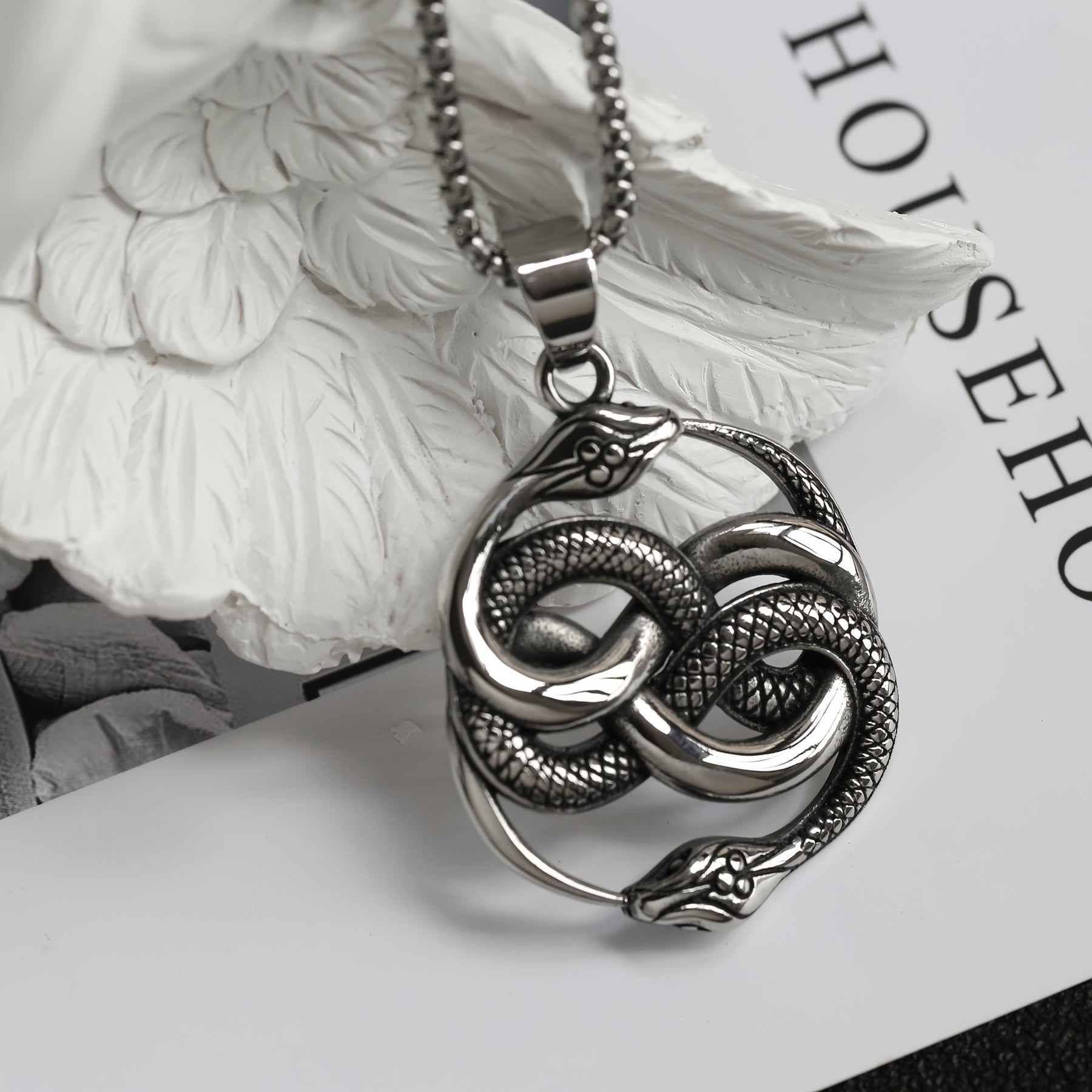 Vintage Silver Double Snake Pendant Necklace Hip Hop Pendant Necklace
