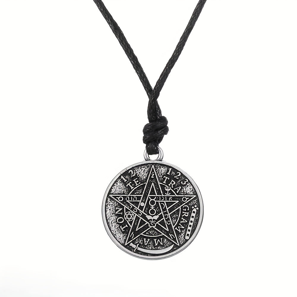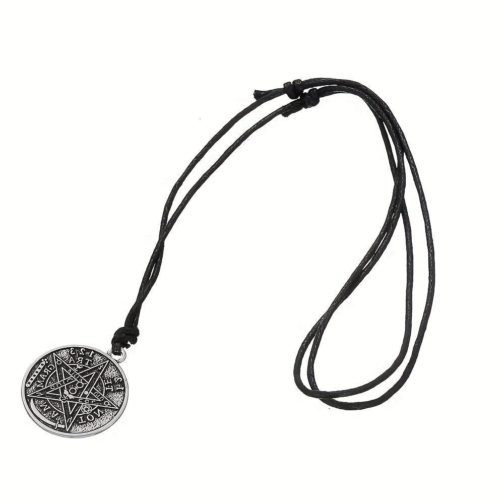 This adjustable rope chain necklace features a silver pentagram pendant, making it a lucky amulet jewelry gift for Wiccan enthusiasts.