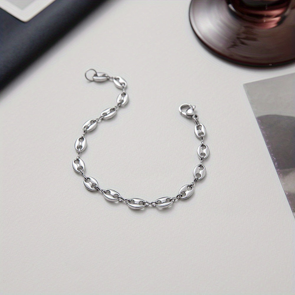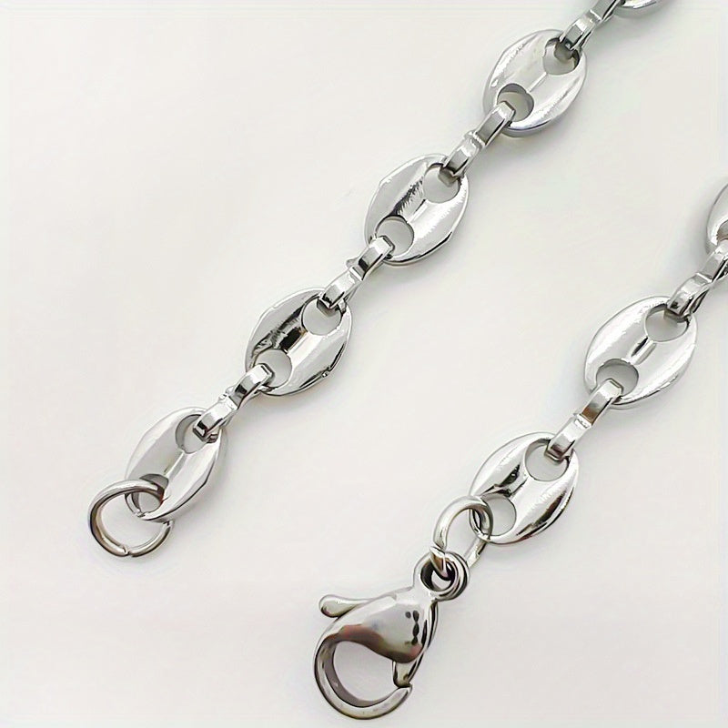 This unique necklace features a coffee bean pendant and a pig nose design crafted from titanium steel for a vintage look.