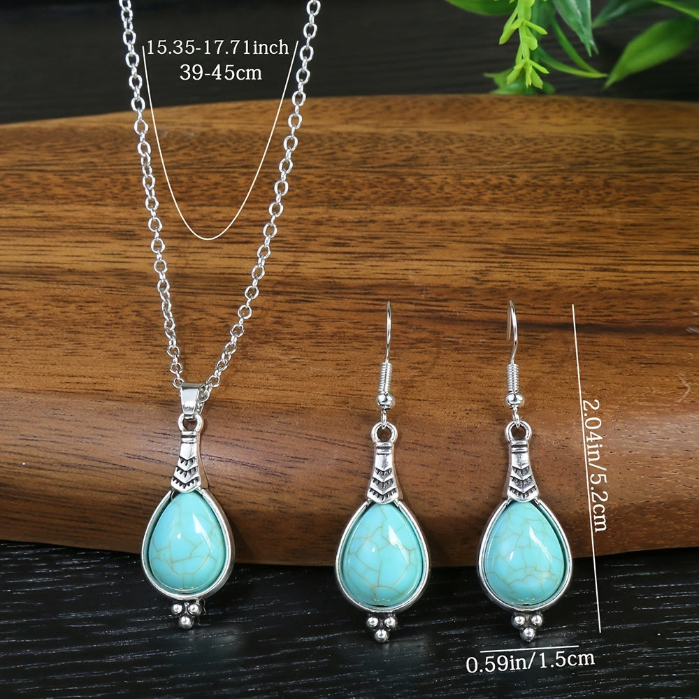 Antique Silver Drop Shaped Turquoise Pendant Ornament for a classic and elegant look.