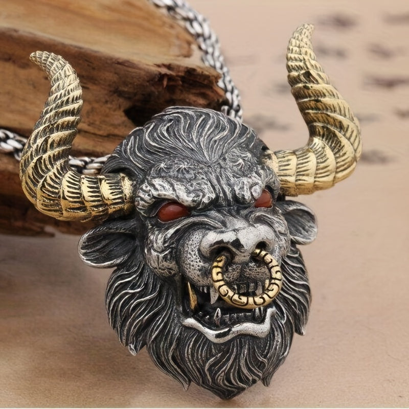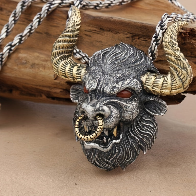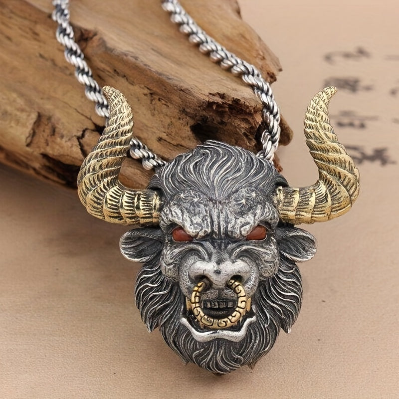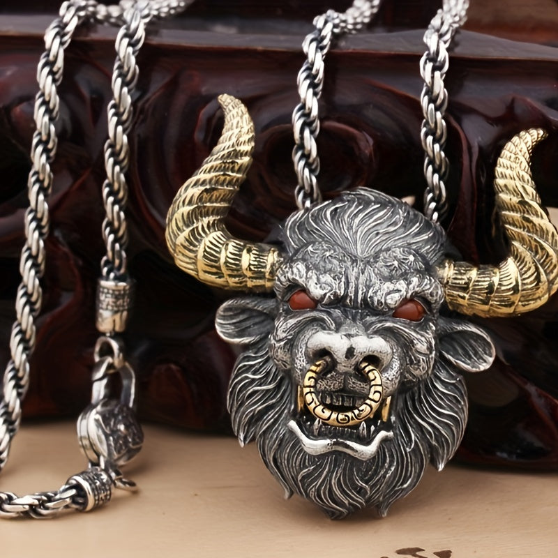 Make a statement with this vintage domineering taupe pendant necklace for men.