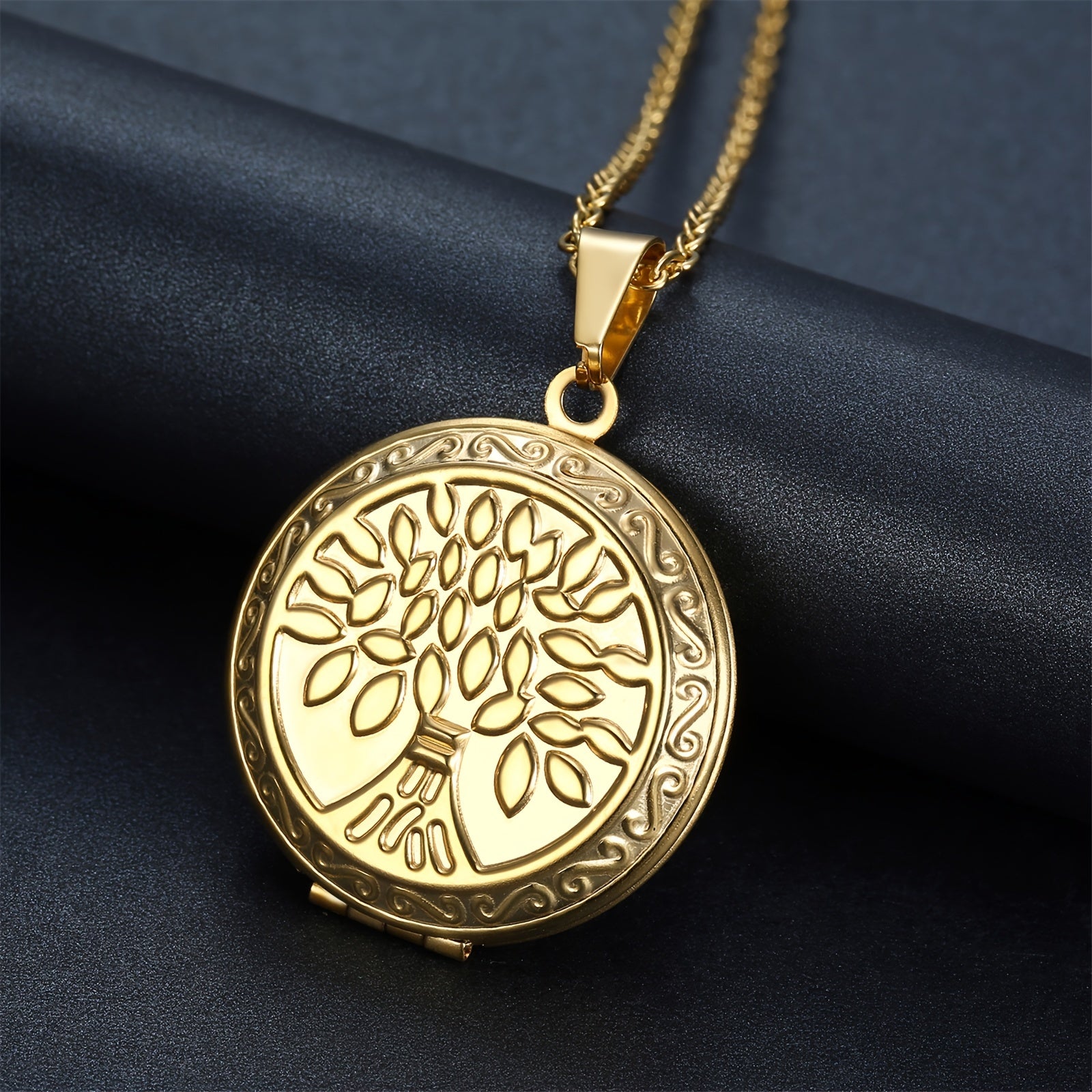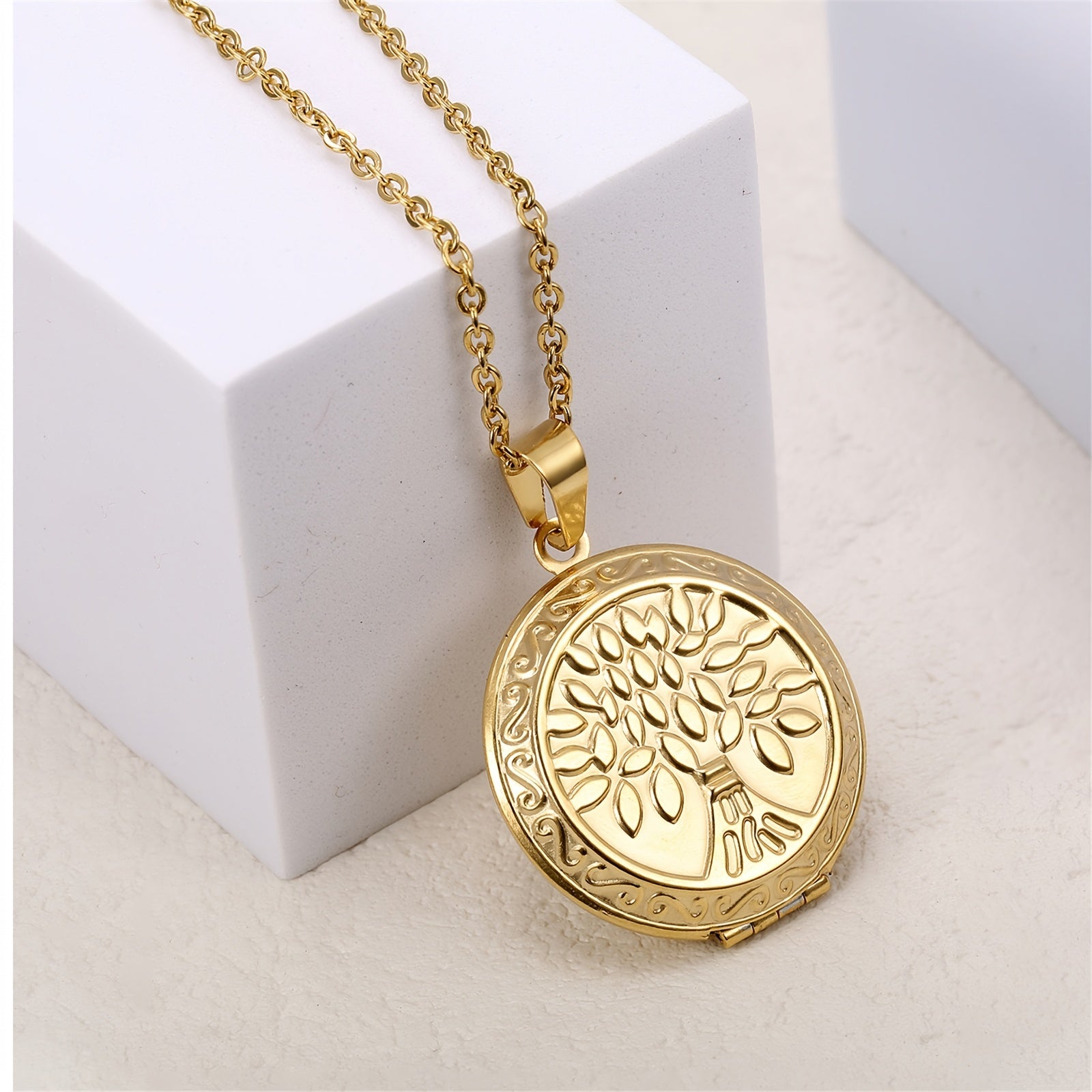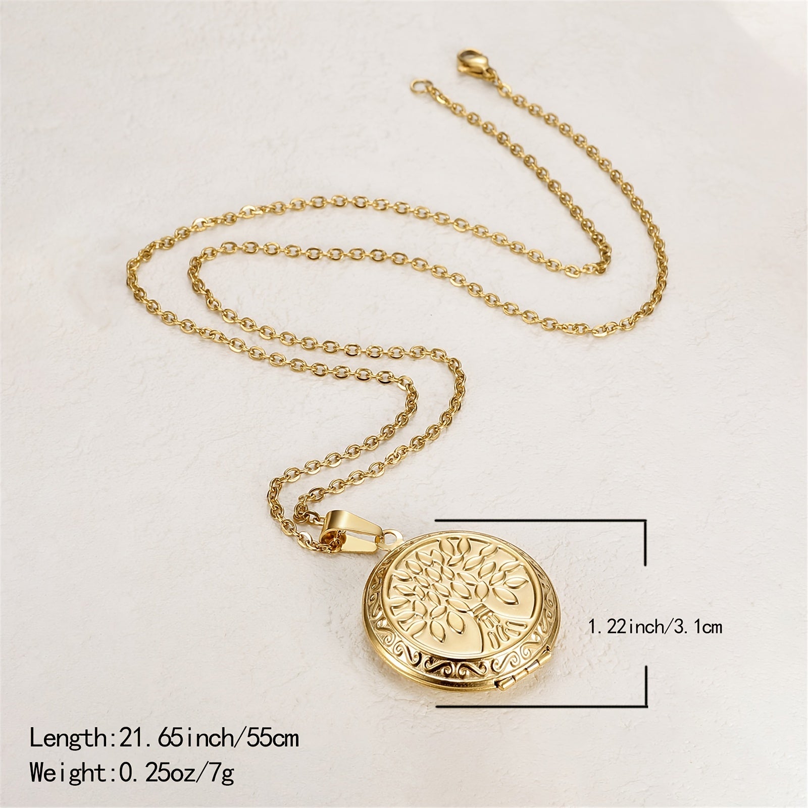 This pendant necklace features a vintage Tree of Life design made of stainless steel with an 18K gold plating. A stylish and meaningful accessory for women.