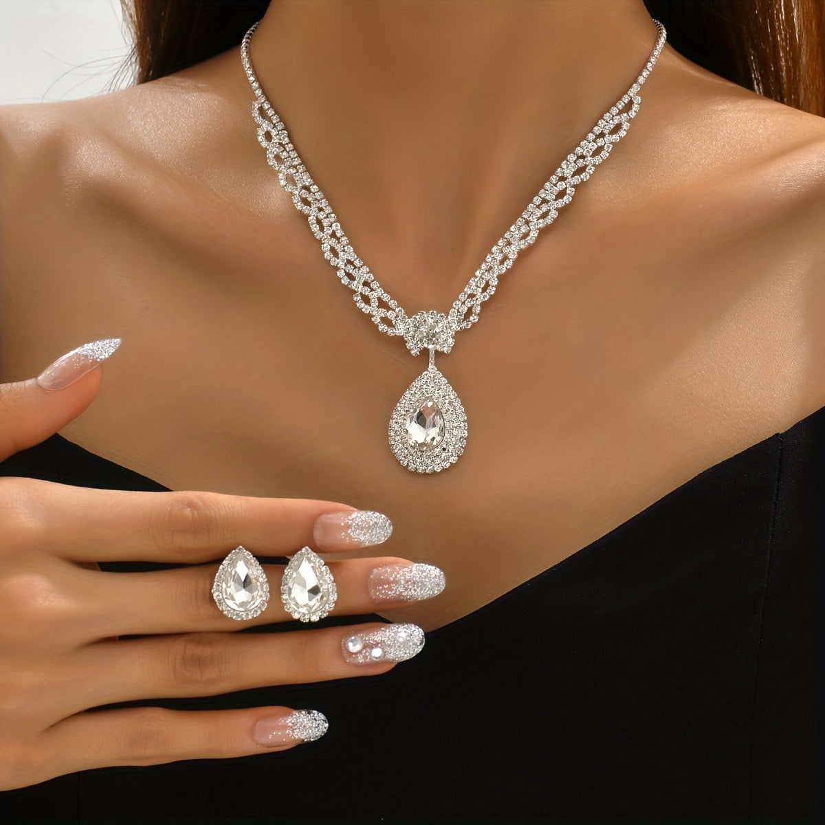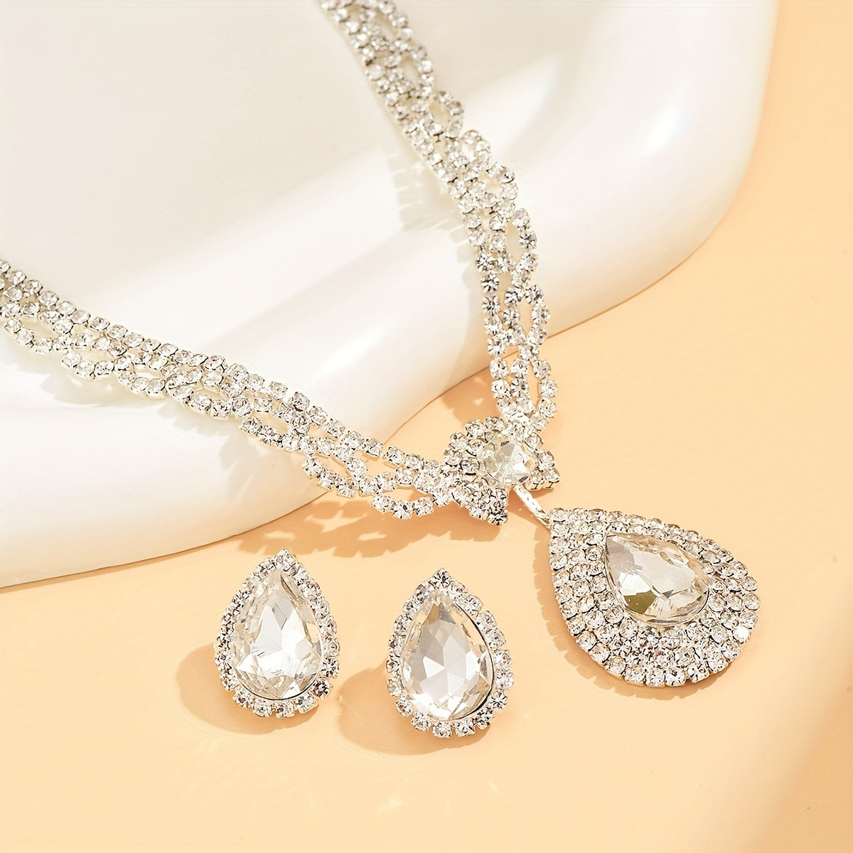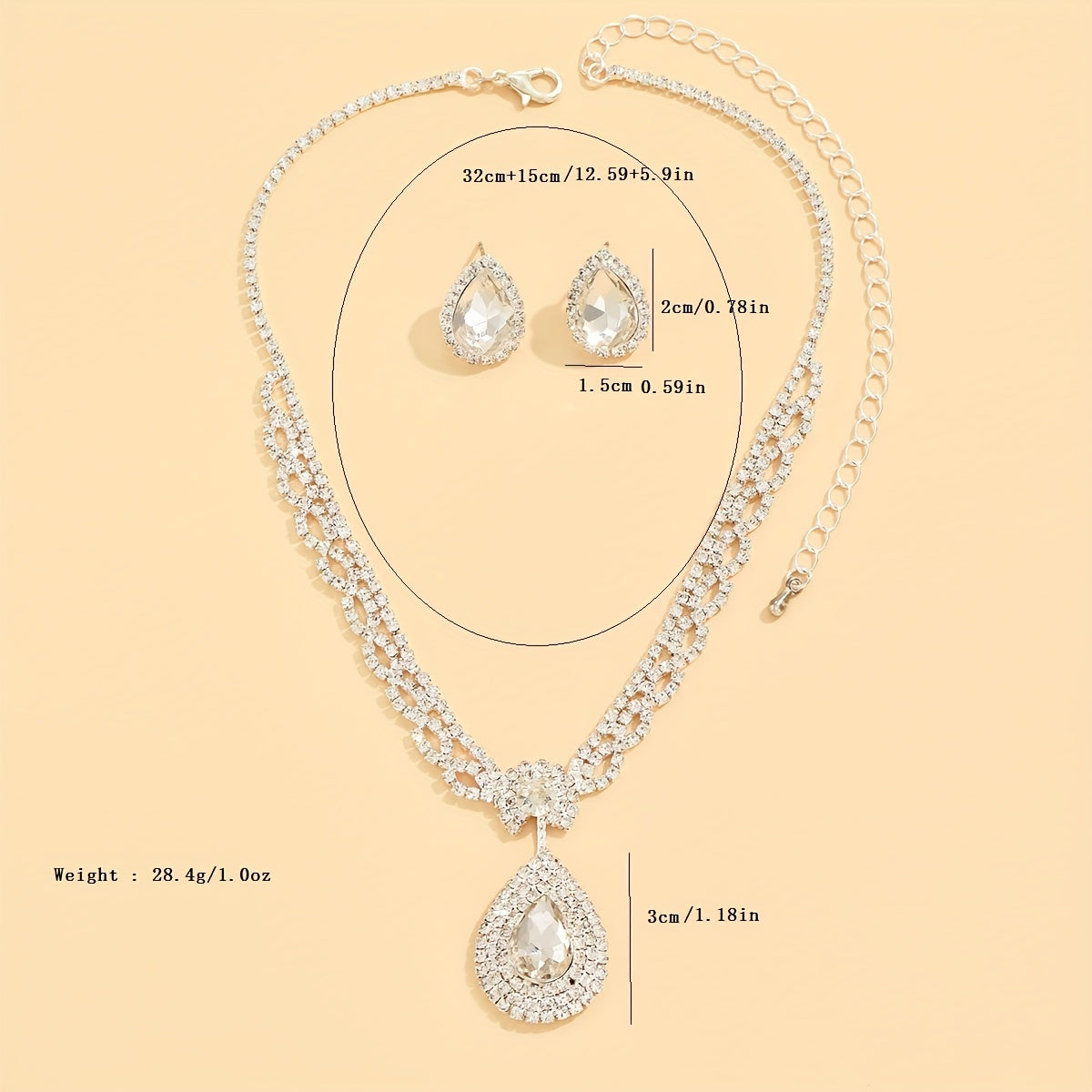 Add a touch of elegance to your outfit with this stunning water drop shape zircon jewelry set. Perfect for weddings, parties, and special occasions.