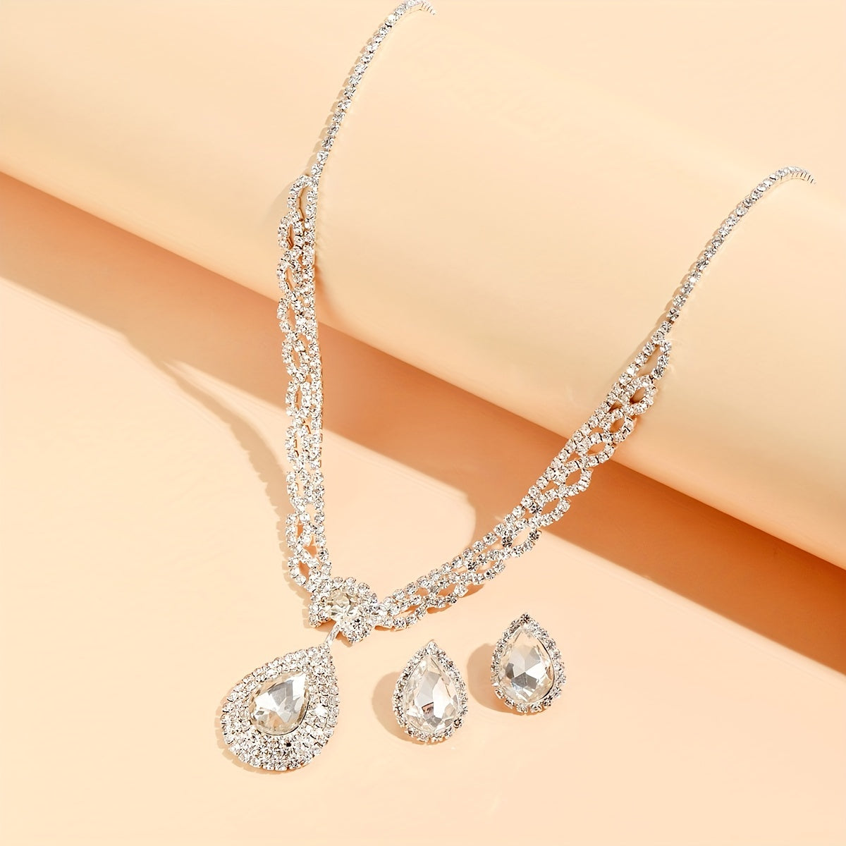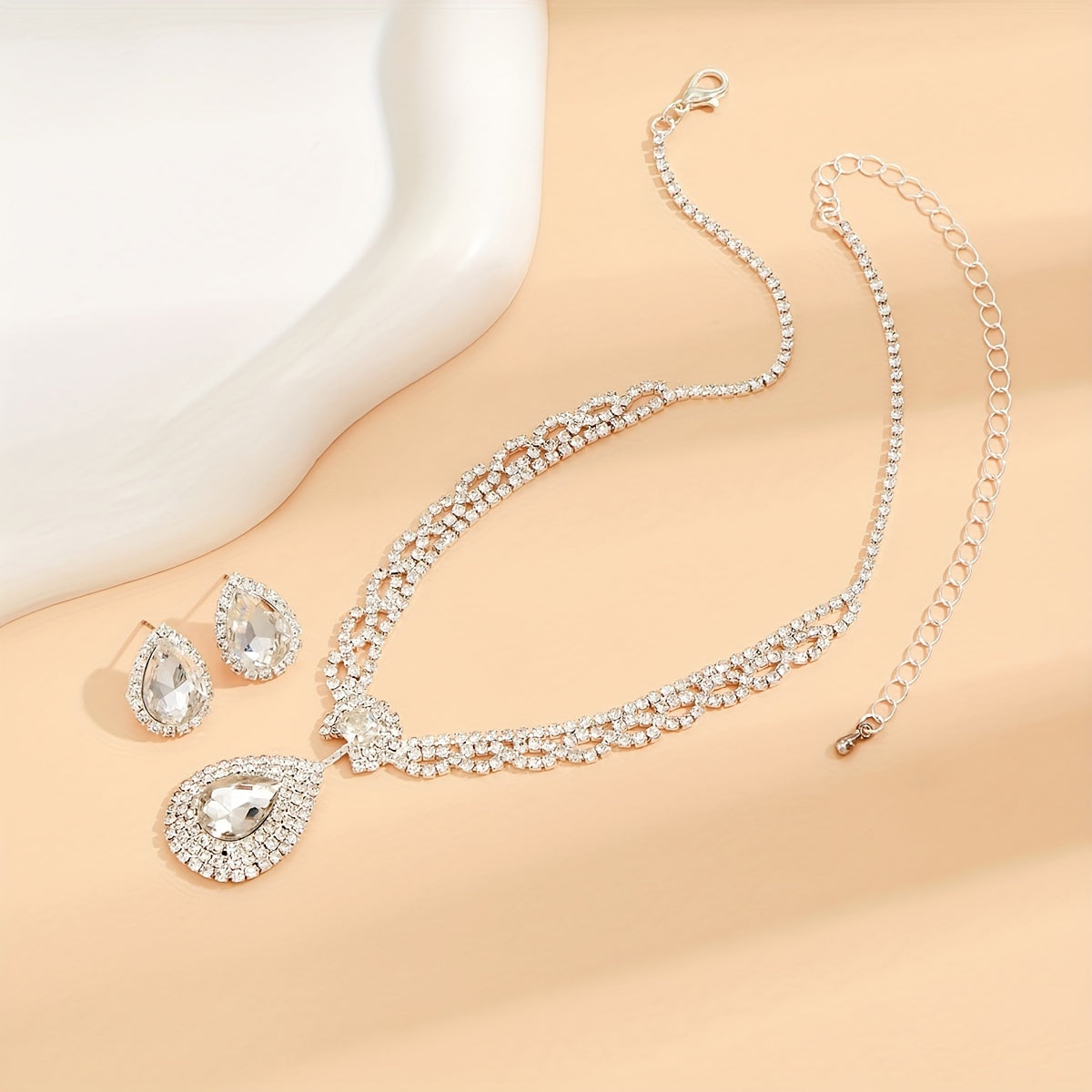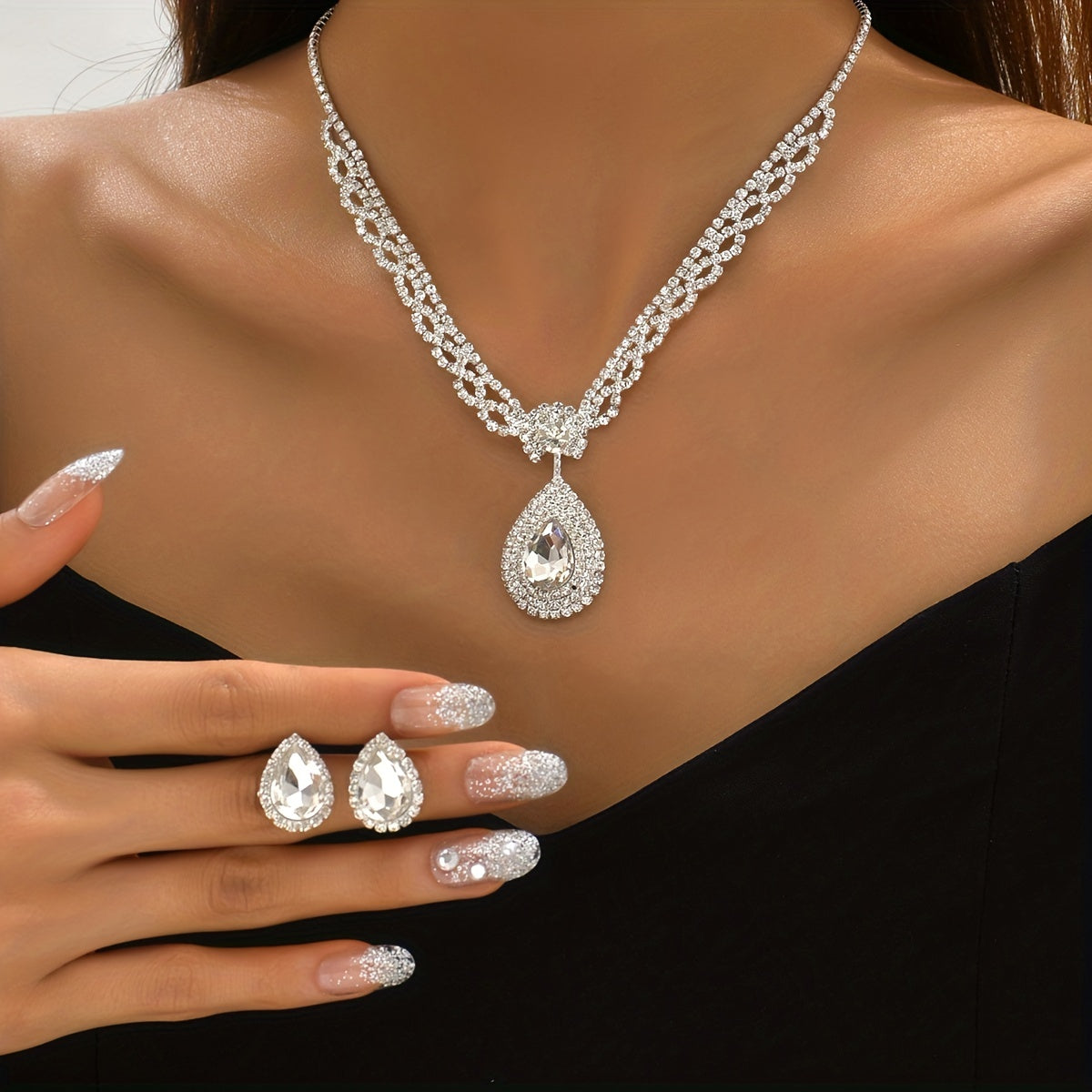 Add a touch of elegance to your outfit with this stunning water drop shape zircon jewelry set. Perfect for weddings, parties, and special occasions.