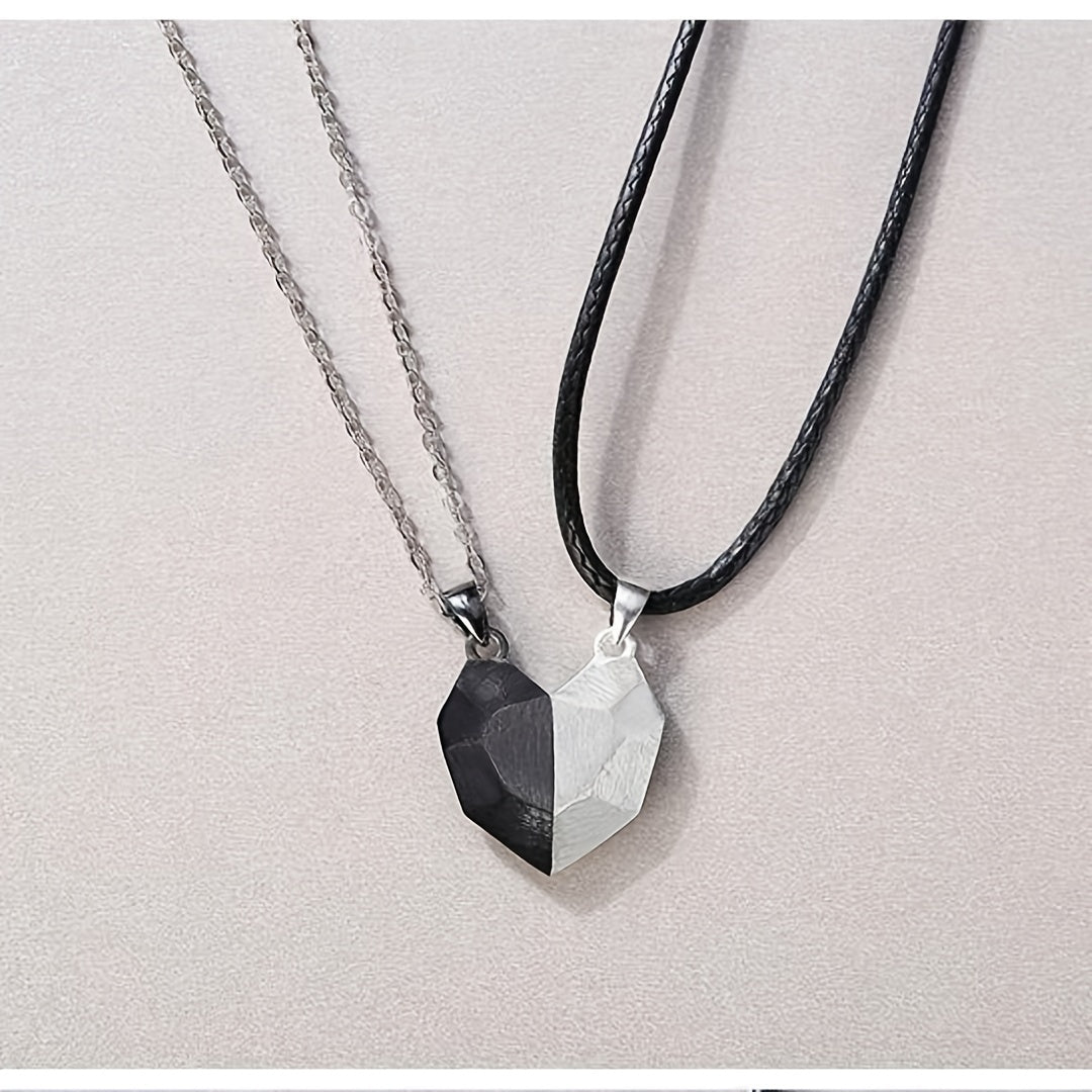 Beautiful heartbroken patchwork pendant necklace, perfect for couples in a relationship. Great Valentine's gift for lovers.