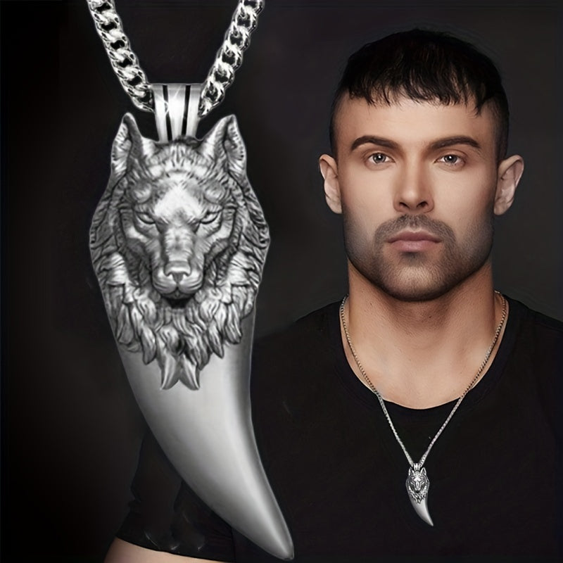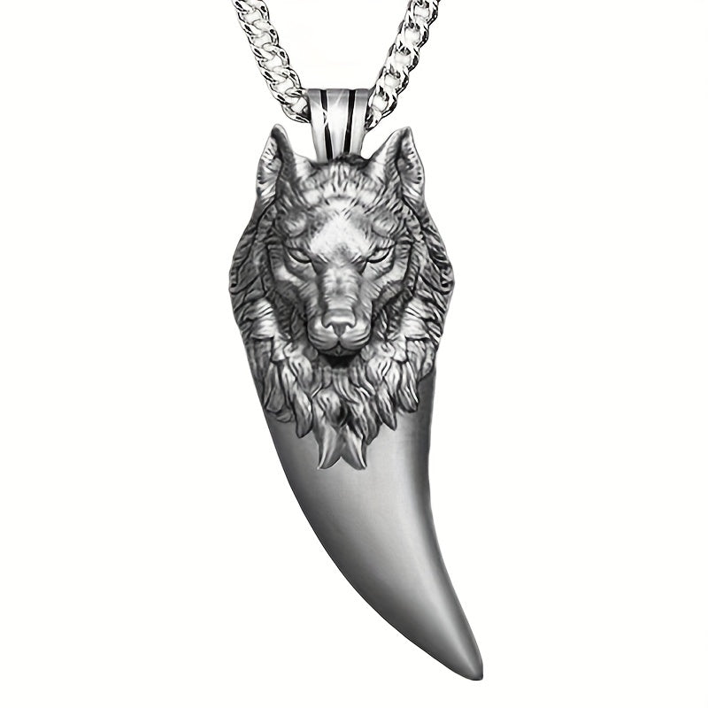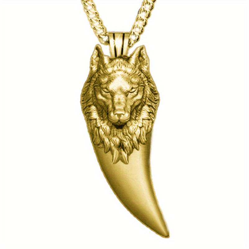 This stylish necklace features a wolf head pendant, perfect for a punk or hip hop look.