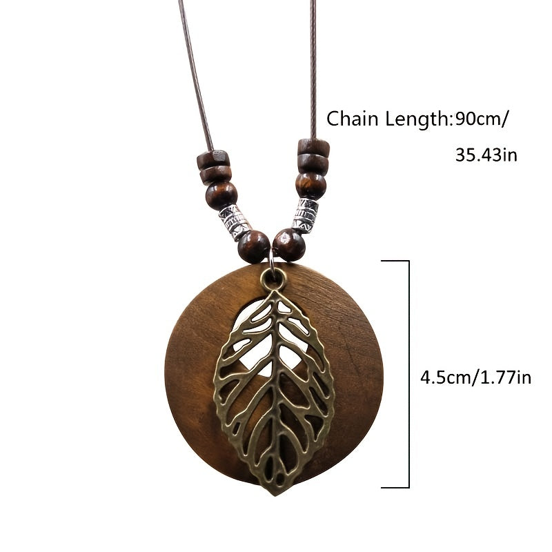 This wooden pendant necklace features various shapes such as leaf, elephant, etc. It has a long PU leather chain that is stylish and comfortable to wear. Perfect for women and girls.
