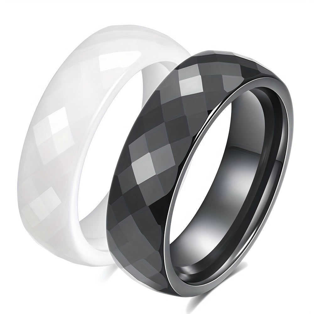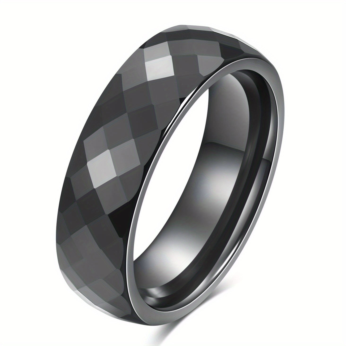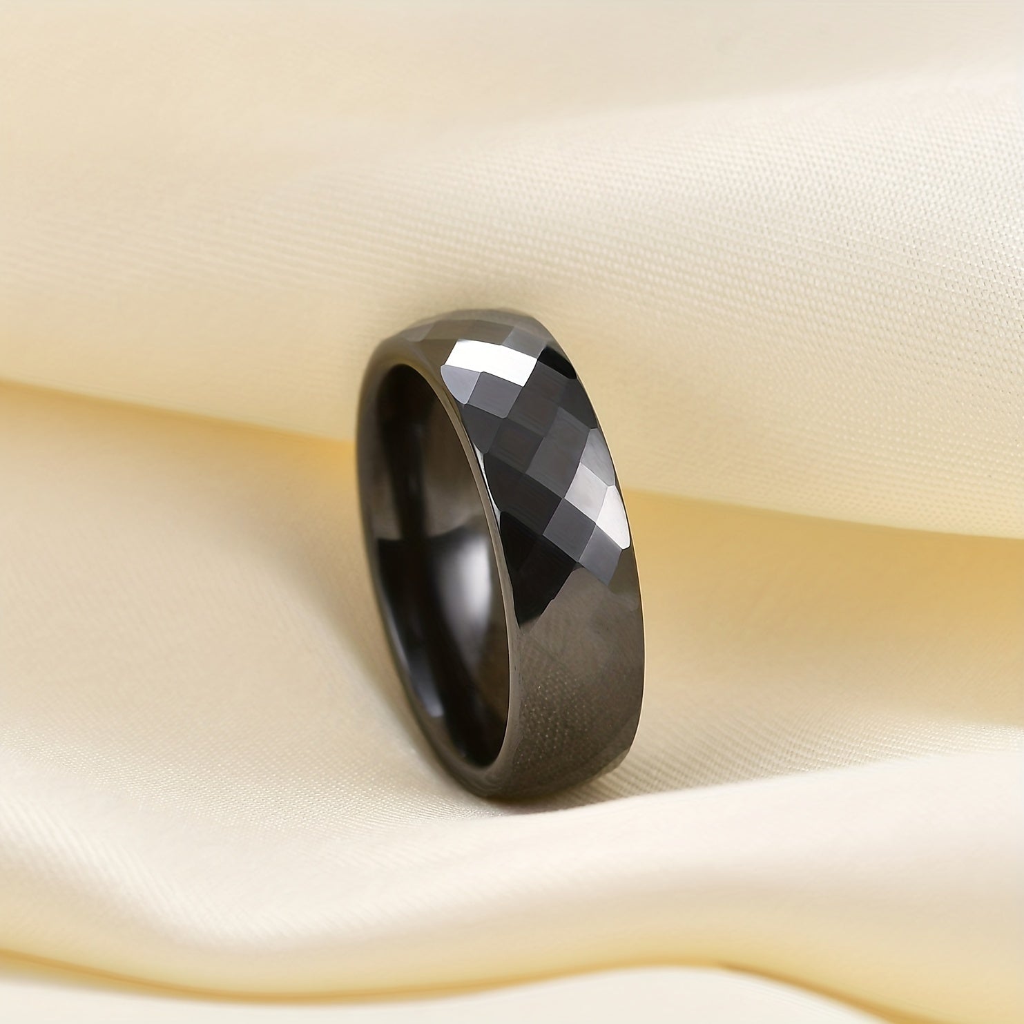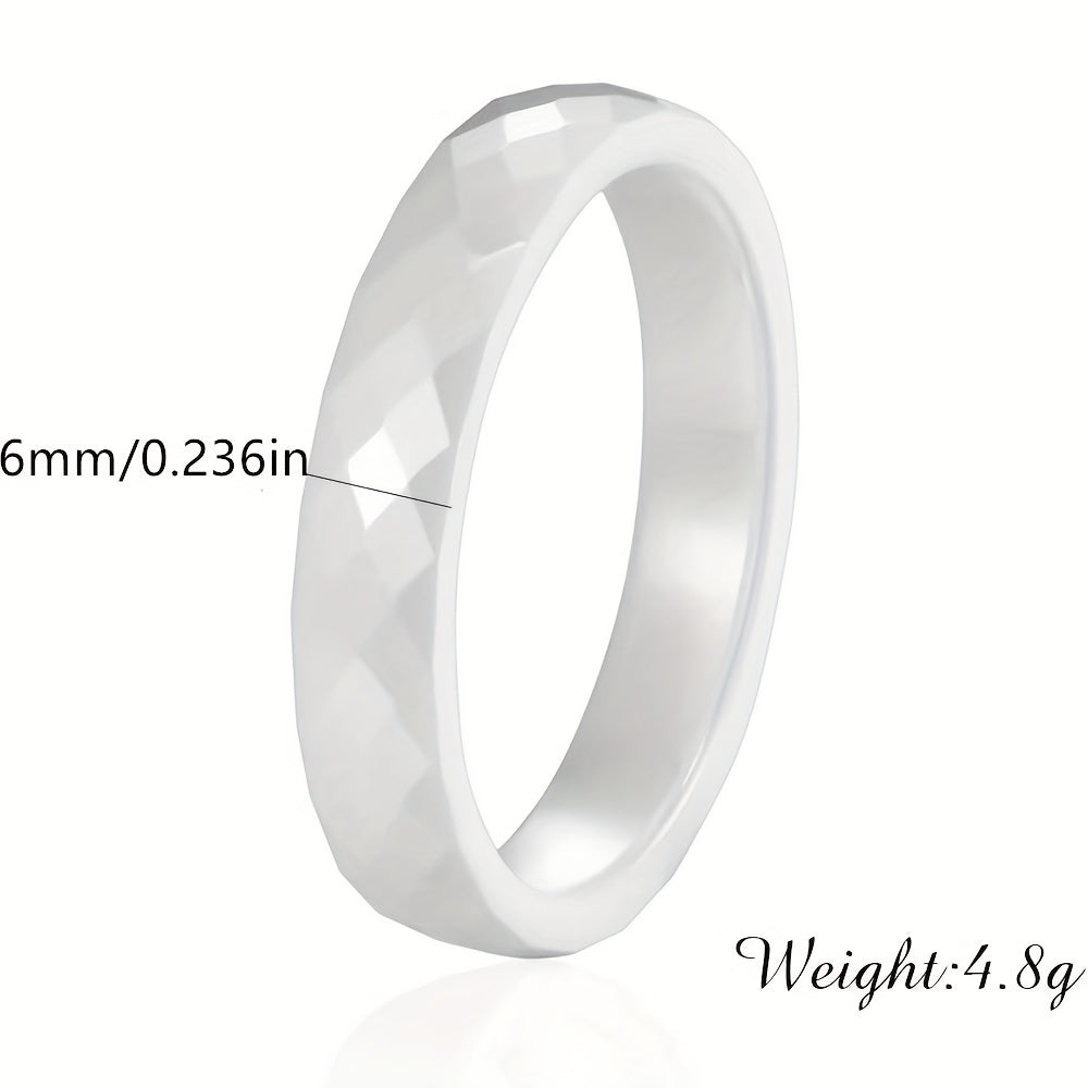 This stylish ceramic ring is perfect for couples with its 6MM width and faceted design. It is versatile and can be worn with any outfit.