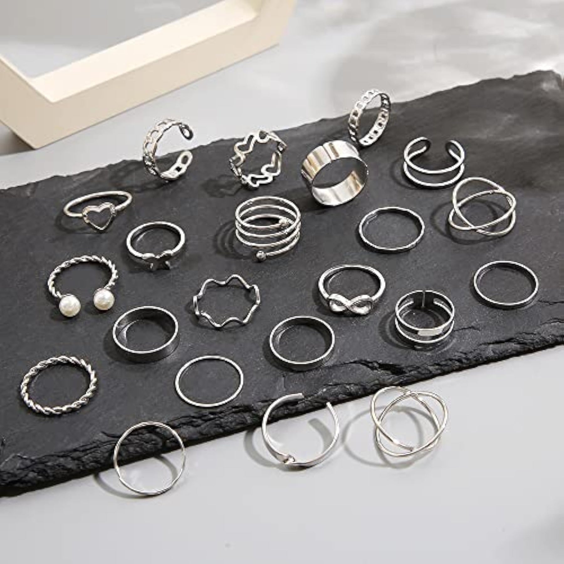 22-Pack Silver Plated Rings Set for Women - Elegant Jewelry Accessories