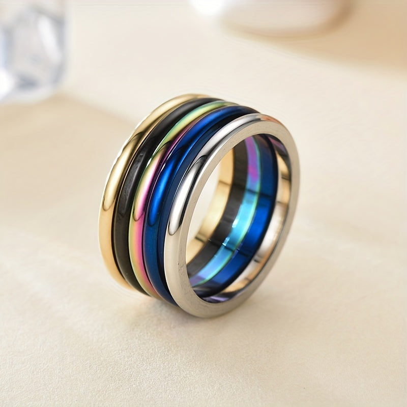 2MM Stainless Steel Stackable Ring Set Unisex Couple Engagement Wedding Ring
