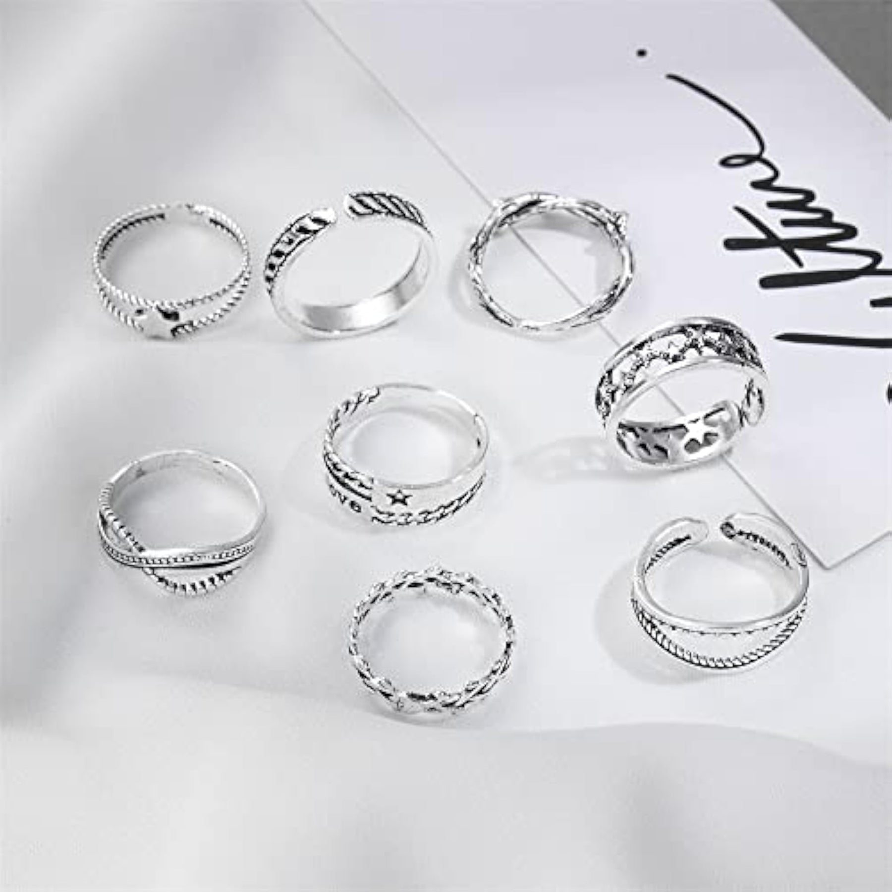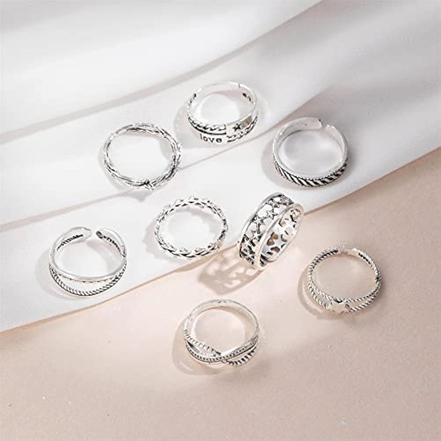 8-Piece Set of Stylish Metal Boho Midi Finger Rings in Silver