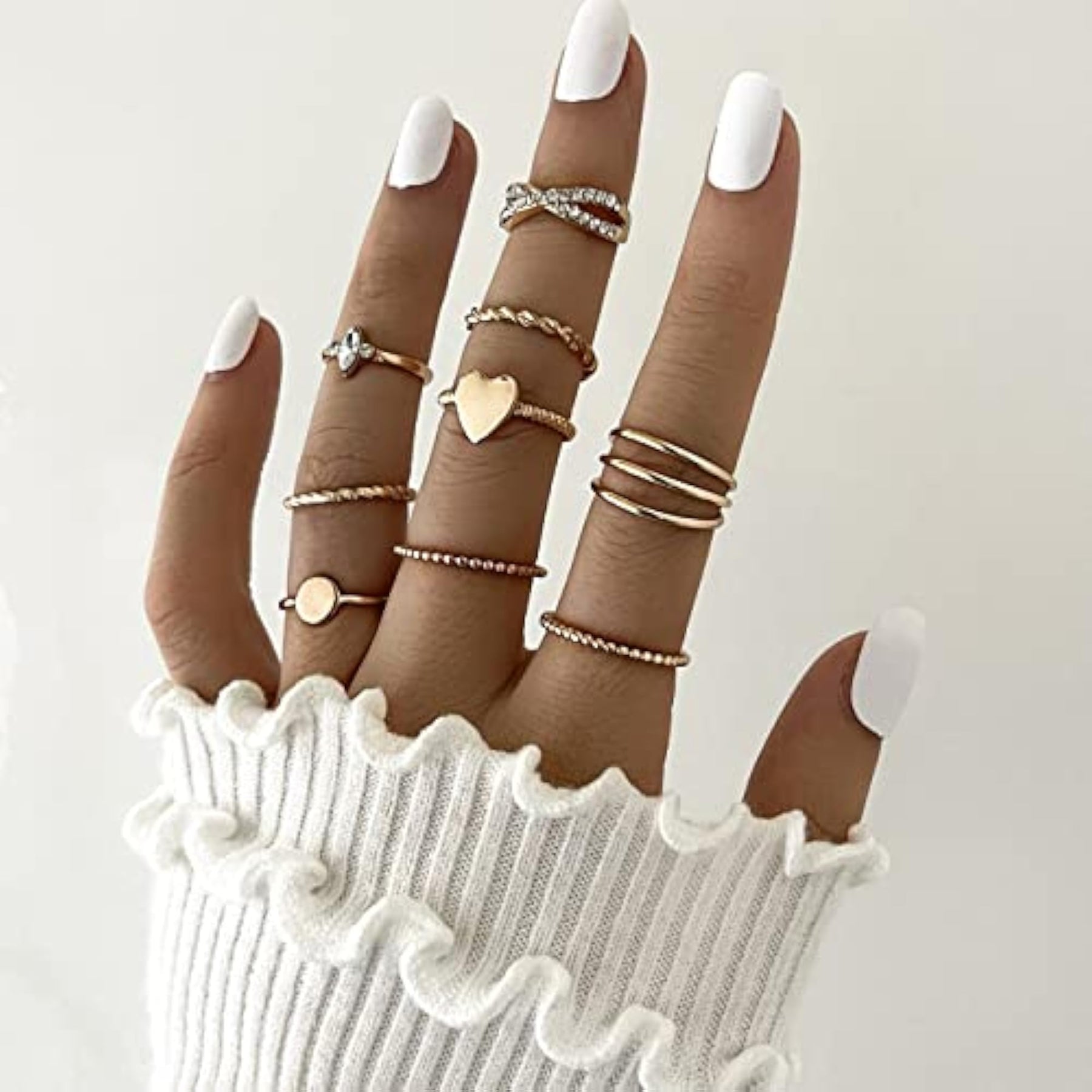 Upgrade your bohemian style with this set of 9 midi rings. Mix and match to create a stunning look that showcases your free spirit.