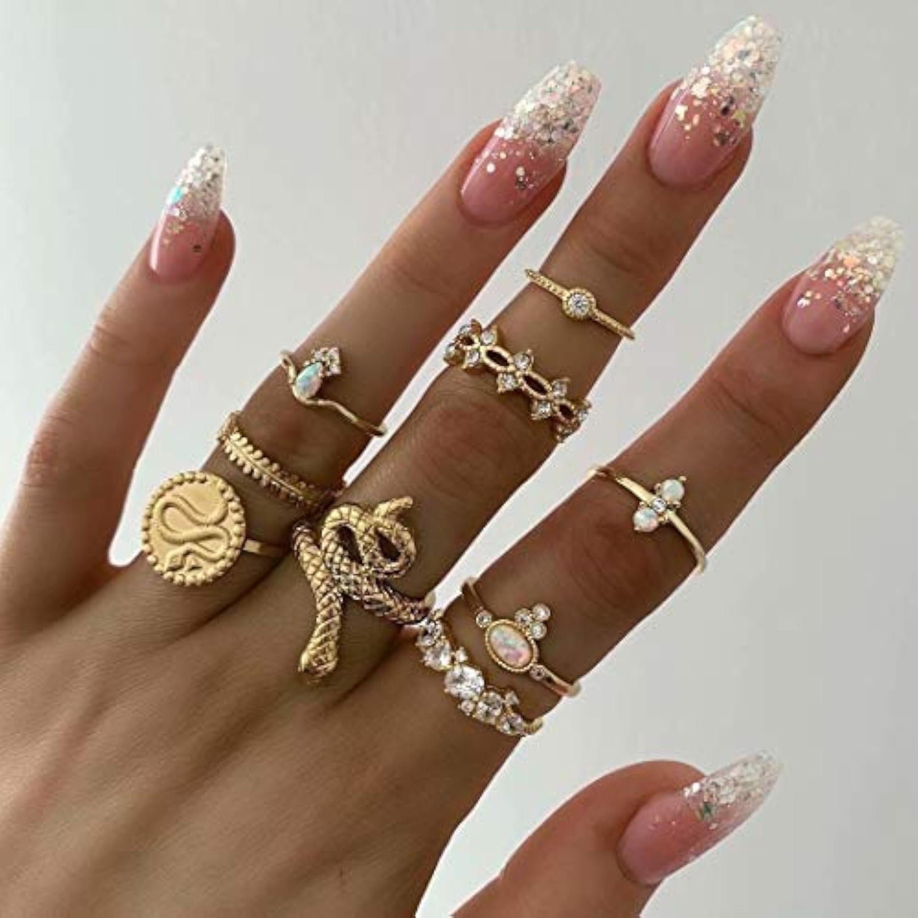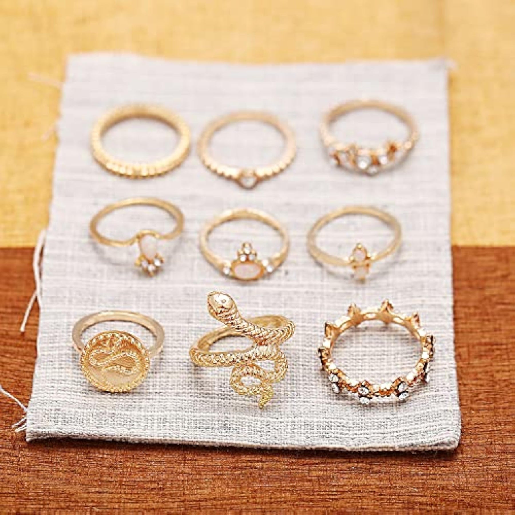 Enhance your bohemian style with this set of 9 midi rings. Made of high-quality metal, these rings are perfect for stacking and layering for a trendy look.