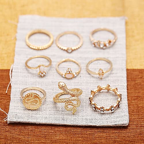 Boho Midi Finger Rings Set of 9 - Stylish Metal Rings