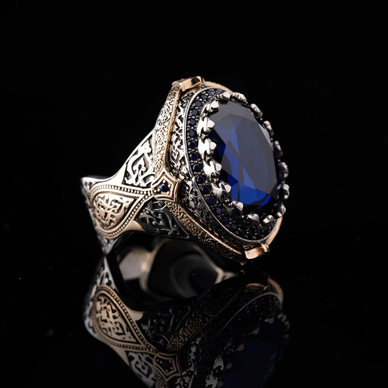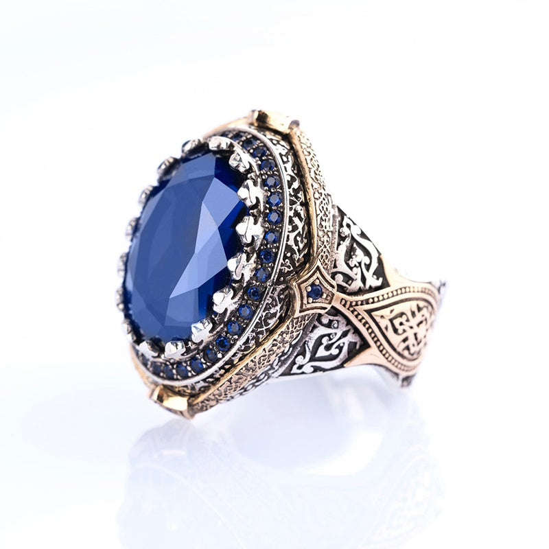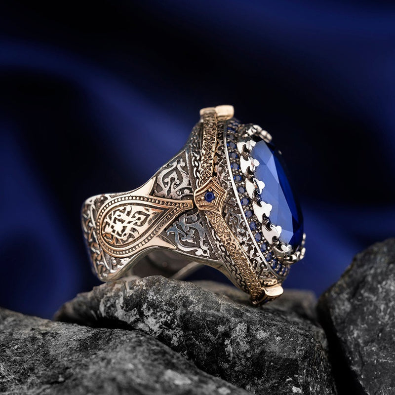 Classic Retro Silver Men Ring Vintage Carved Hollow Pattern Sicilian Style Ring