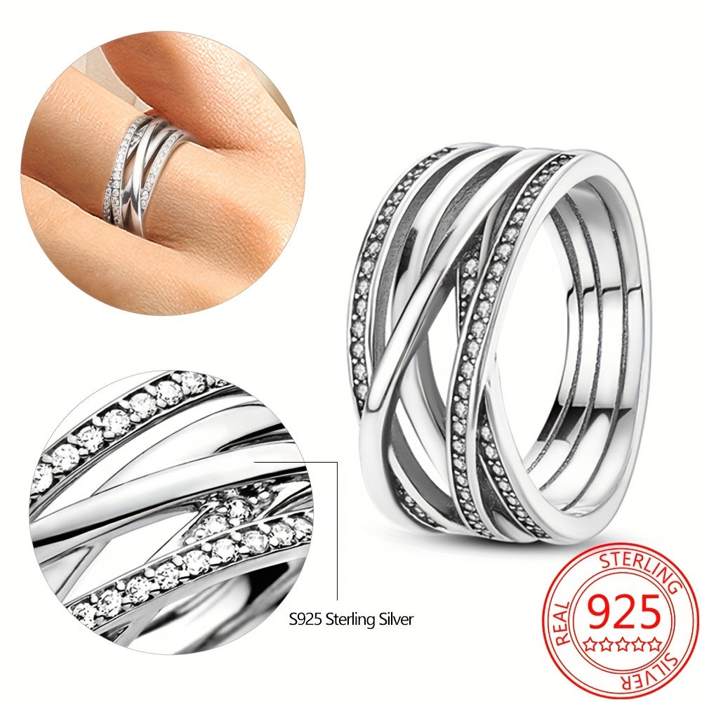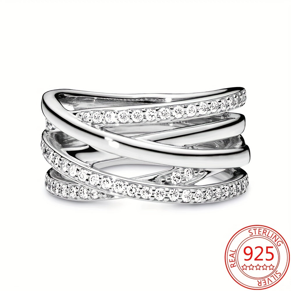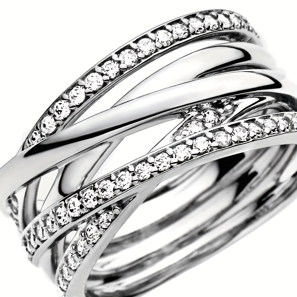 This classic wrap ring is crafted in 925 silver plating and features inlaid rhinestones, perfect for daily outfits. Makes a sweet gift for couples.
