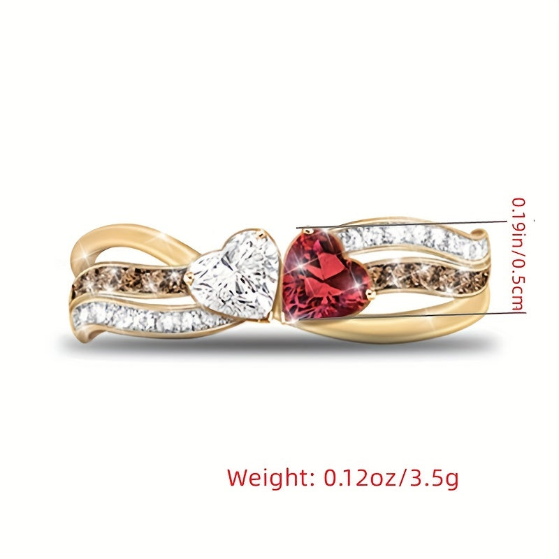 This stunning double heart promise ring is plated with 14K gold, making it a perfect choice for weddings, engagements, or as a heartfelt Valentine's gift.