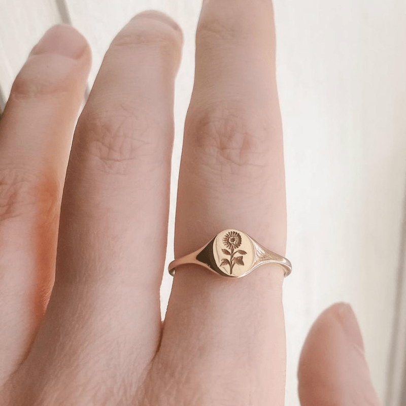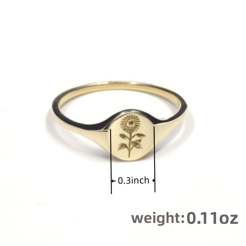 This beautiful sunflower ring is an elegant piece of jewelry that makes a perfect gift for birthdays or holidays. The intricate sunflower design adds a touch of charm to any outfit.