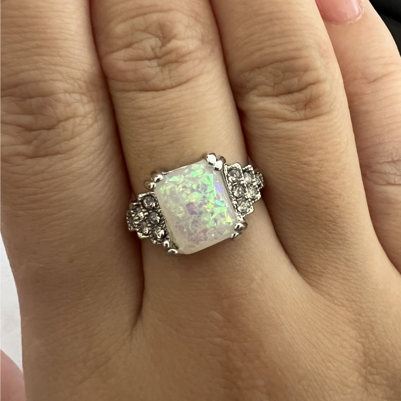 This stunning Fire Opal ring is the perfect accessory for any occasion. Whether it's a wedding, engagement party, birthday, or anniversary, this ring will dazzle and impress. Available in sizes 5-11.