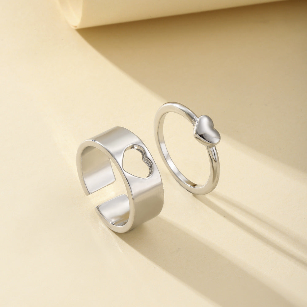 Flame Hollow Love Heart Couple Rings Set Punk Style Adjustable