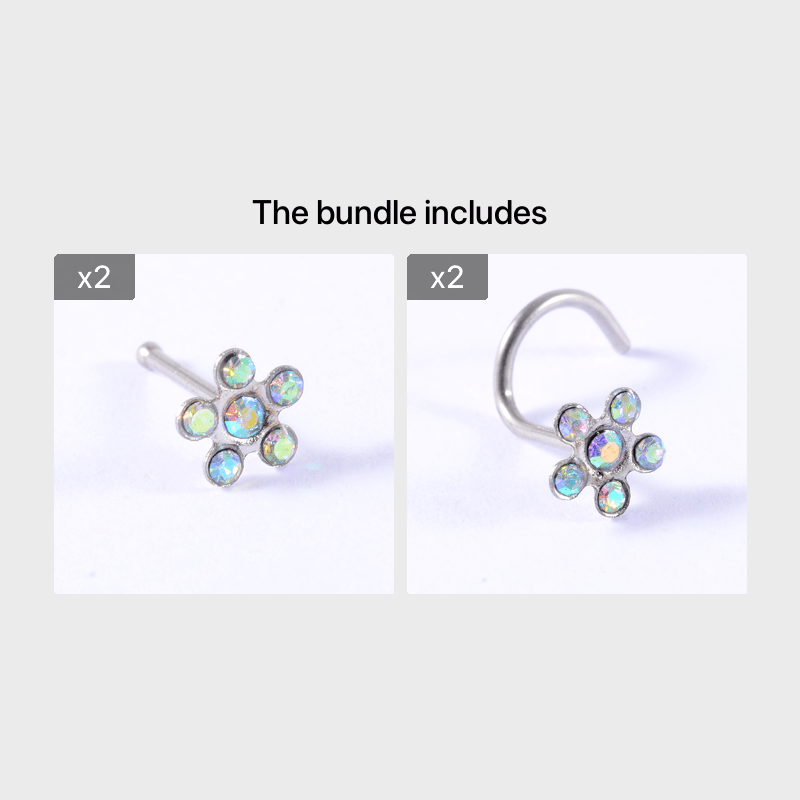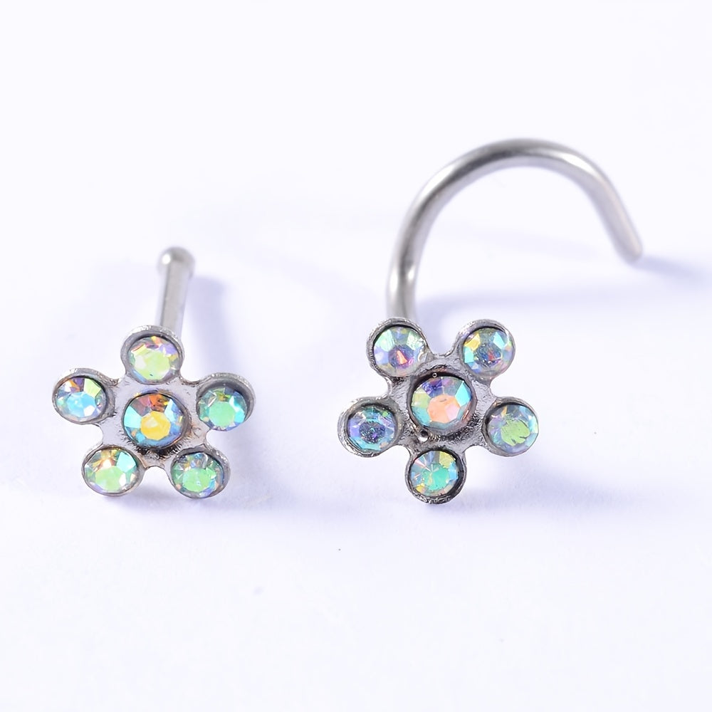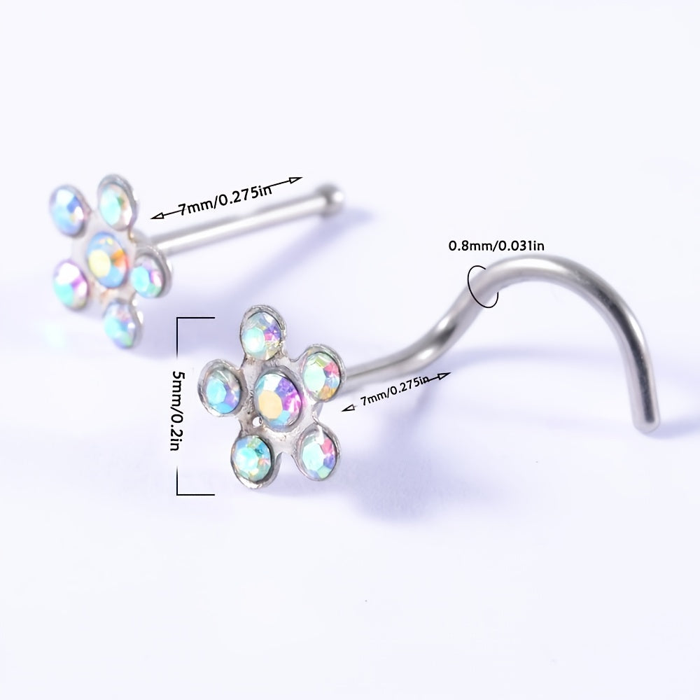 Add a touch of elegance with this flower-shaped nose ring adorned with rhinestones. Made of durable stainless steel, this body piercing jewelry is both stylish and comfortable.