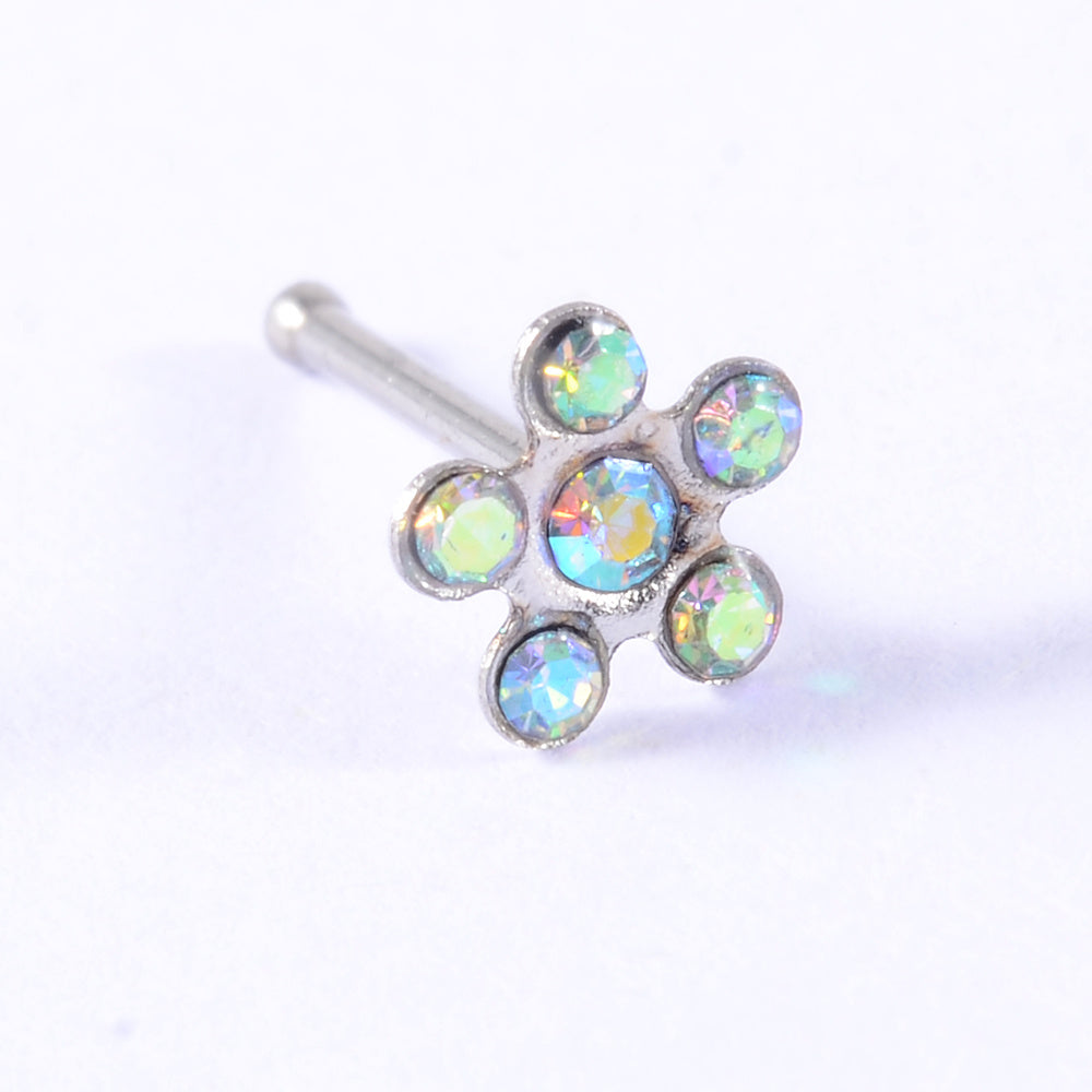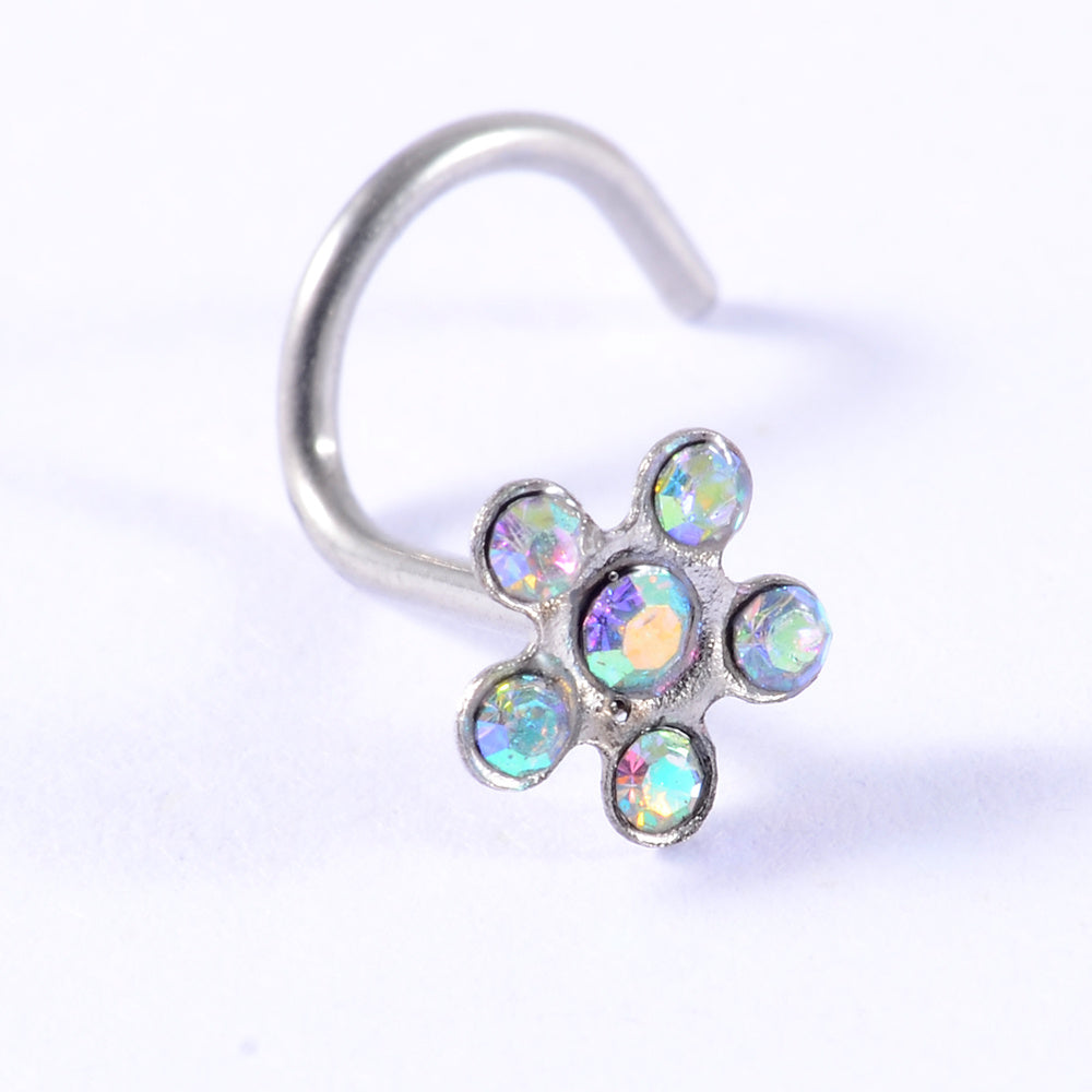 Flower Shape Rhinestones Nose Ring Stainless Steel Piercing Jewelry