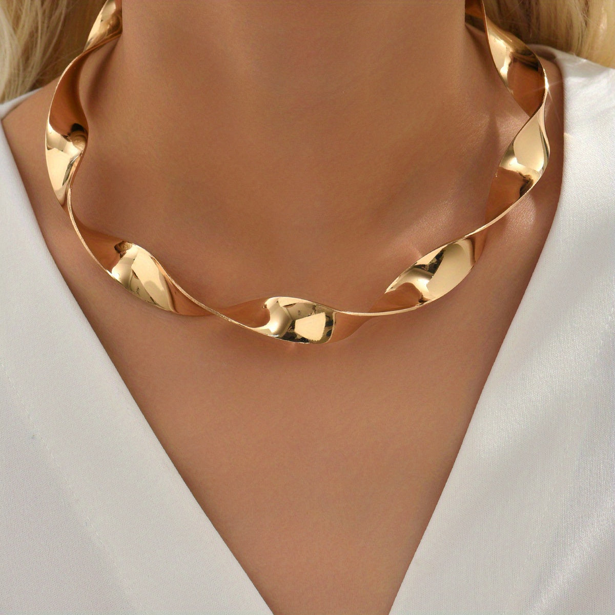 Enhance your style with this stunning golden spiral neck ring collar made of 18K plated jewelry. Perfect for women and girls.