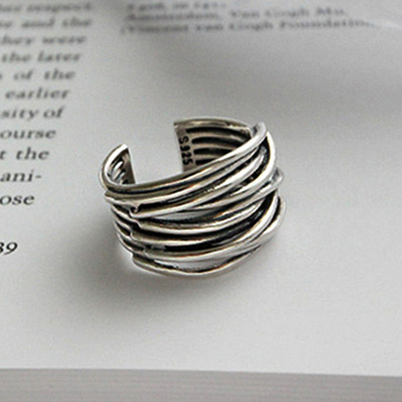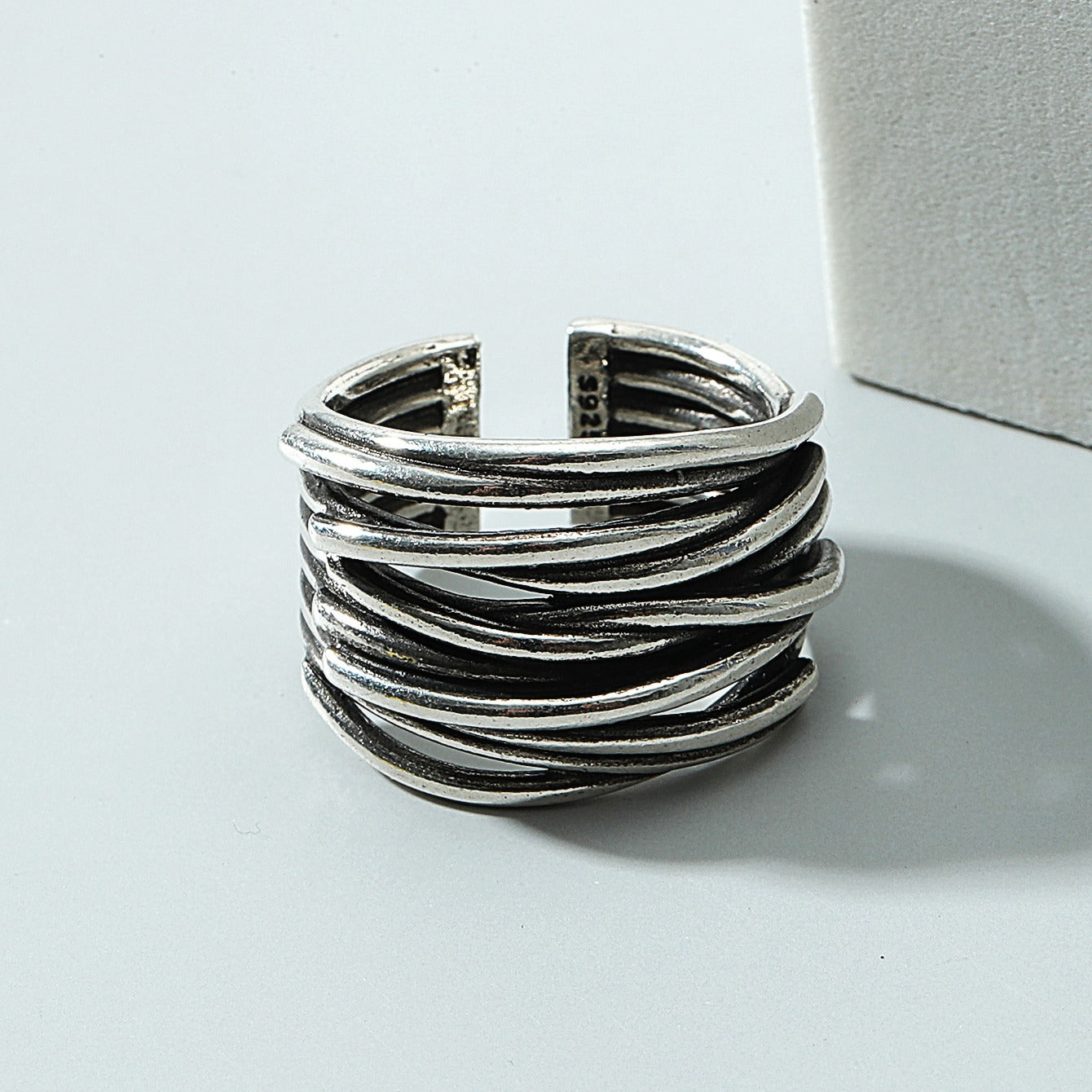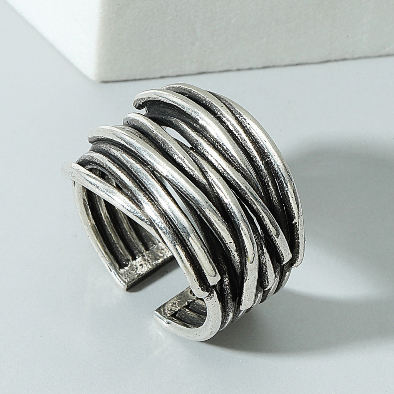 Gothic Curve Ring - Silver Plated Adjustable Ring