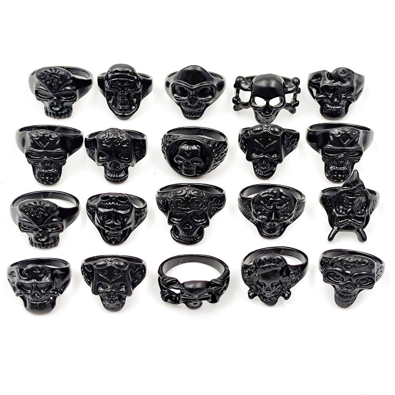 Add a touch of Gothic flair to your daily outfits with these trendy skull head rings. Perfect for Halloween season and available in various colors to match your style.