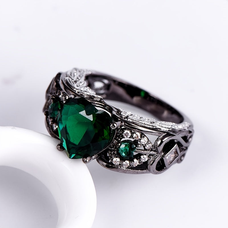 These heart-shaped green gemstone couple rings are perfect for engagements and weddings. The women's ring is elegant and stylish, while the men's ring adds a touch of sophistication to any outfit.