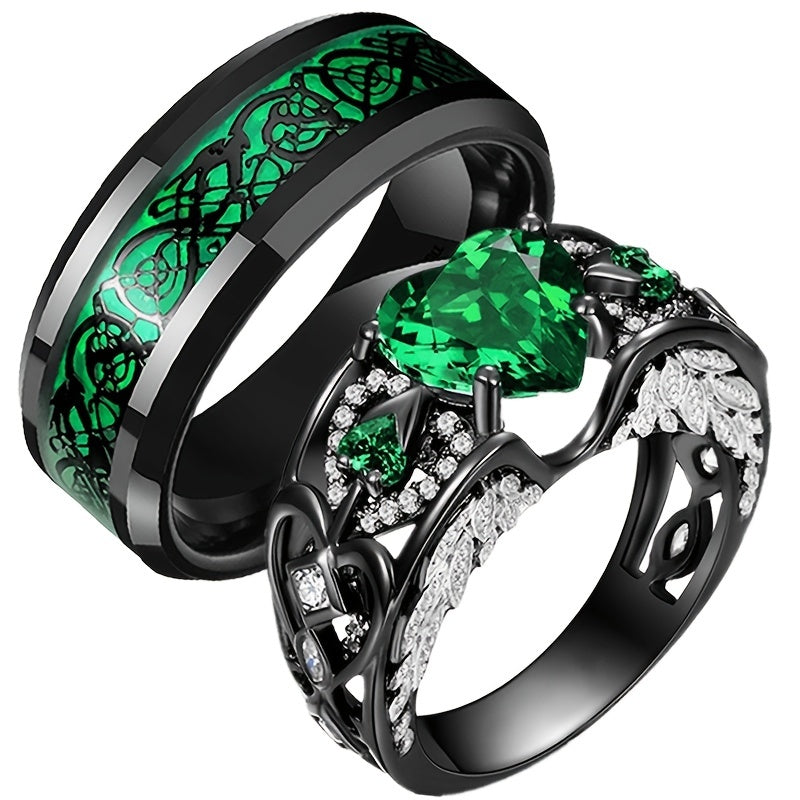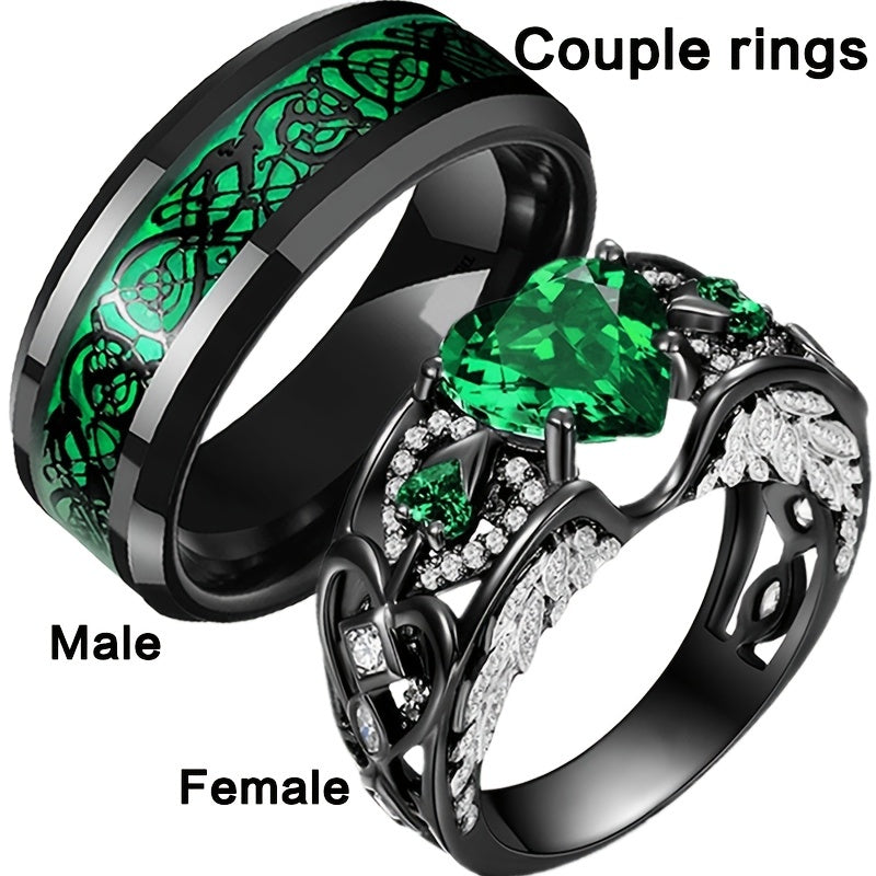 Green Gemstone Couple Rings Women's Engagement Wedding Rings Men's Ring