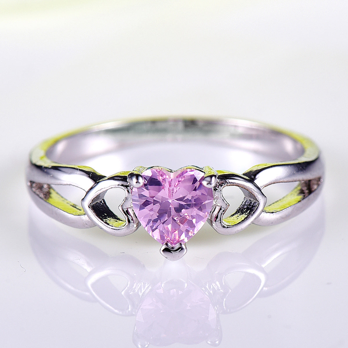 Heart Birthstone Solitaire Engagement Ring Love Promise Band Ring