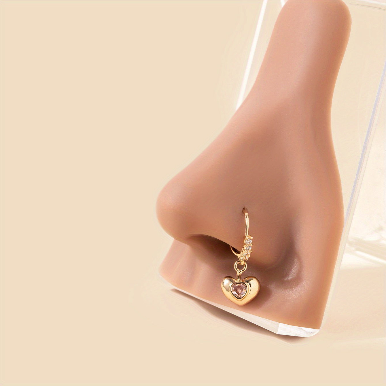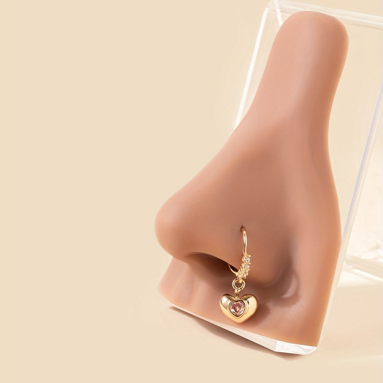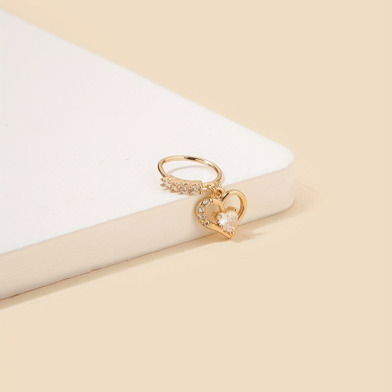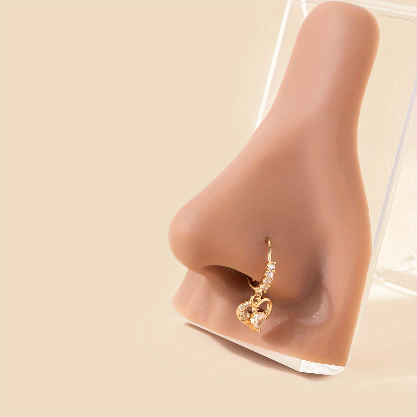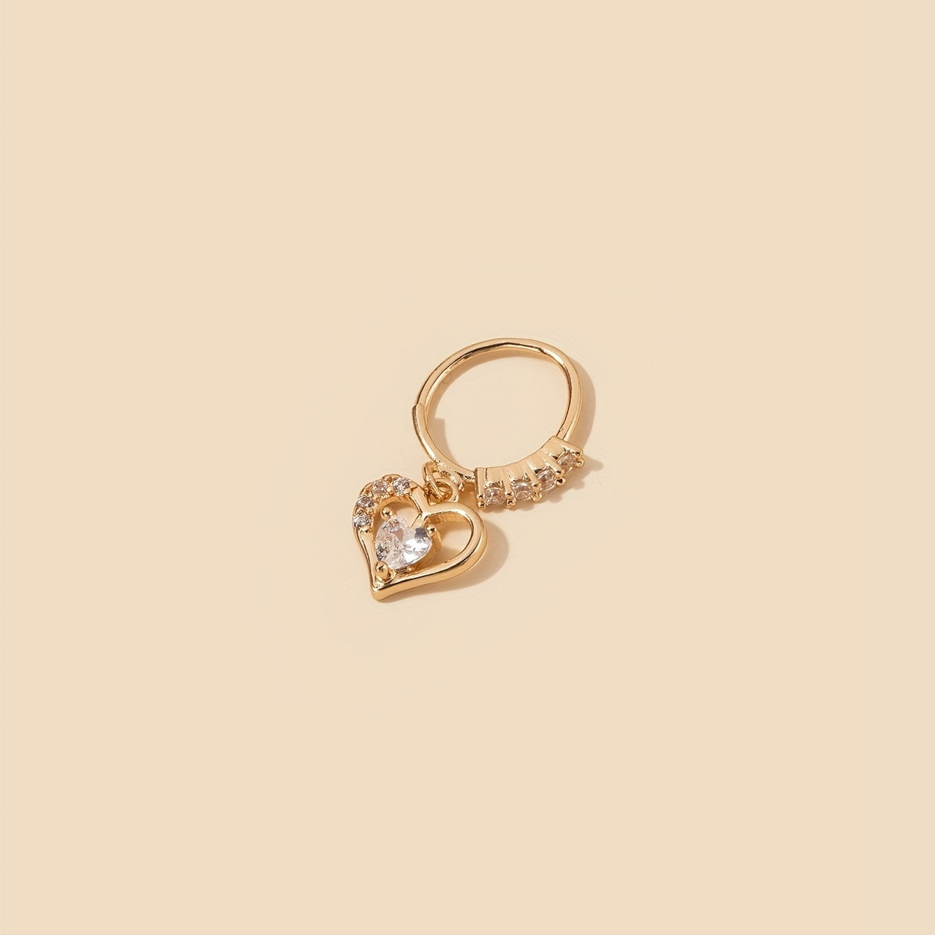 Adorn your nose with this stunning hollow out love heart shape pendant hoop nose ring featuring sparkling zircon inlays. A stylish choice for nose piercing jewelry.