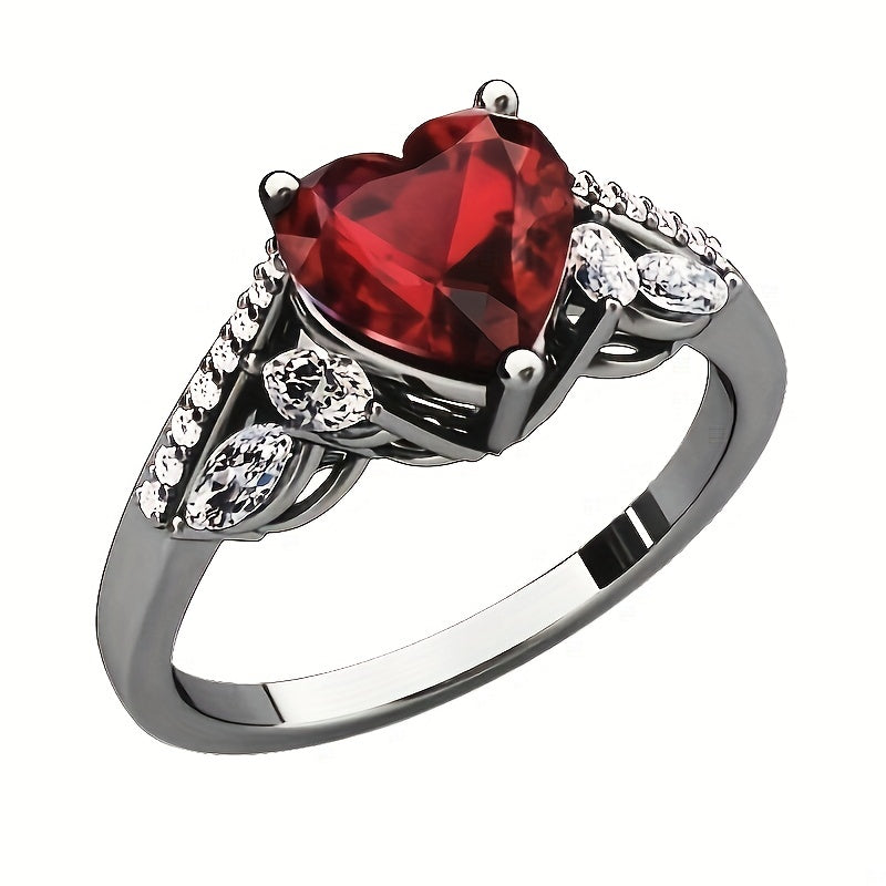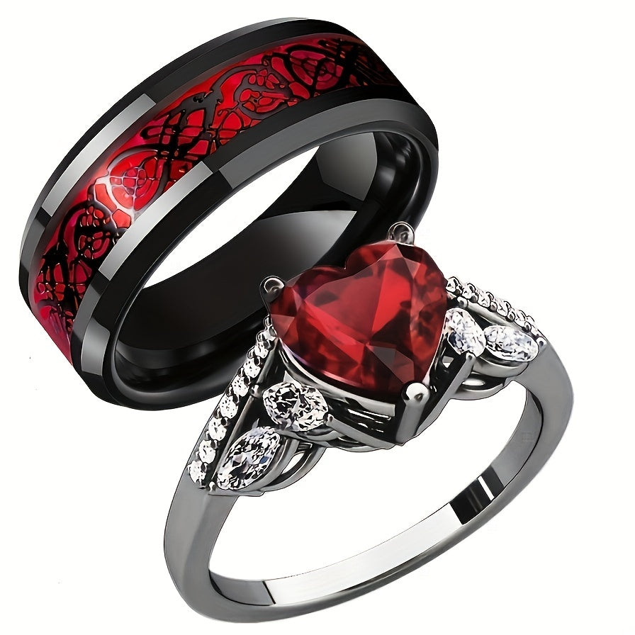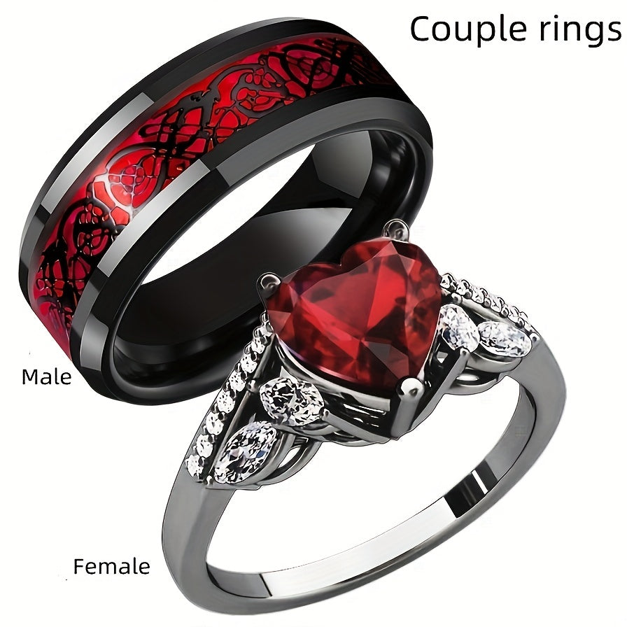 This stunning engagement and wedding ring features a heart shape zircon inlay, symbolizing eternal love. A perfect choice for couples looking to express their commitment and affection.