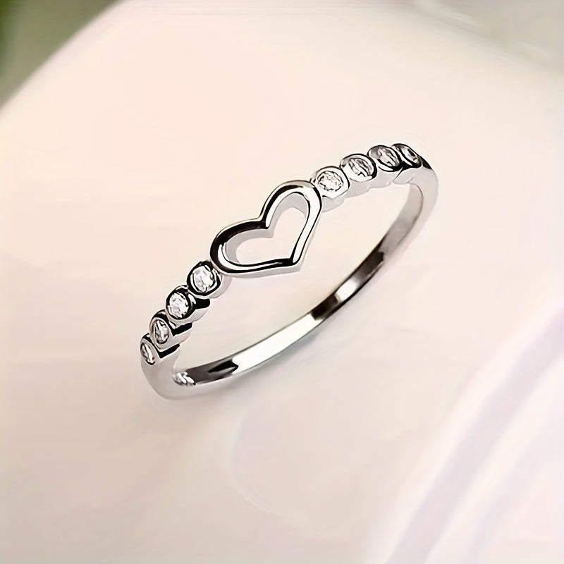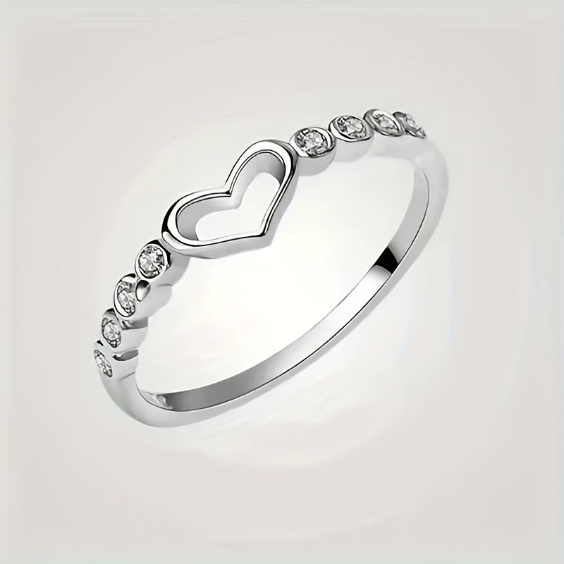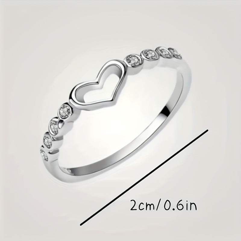 Add a touch of sparkle to your look with this hollow heart shaped ring featuring rhinestones. Perfect for special occasions or everyday wear.