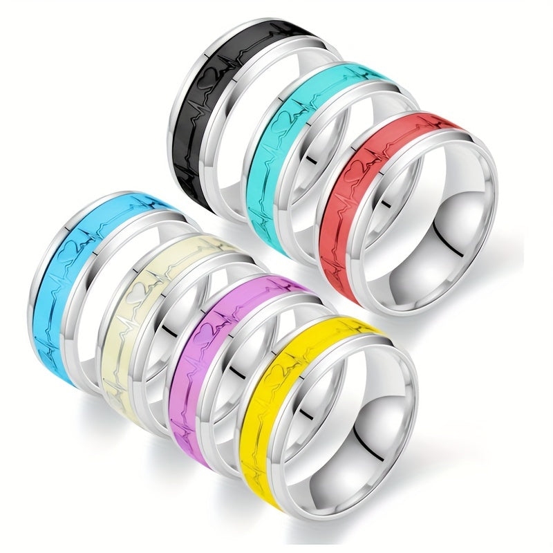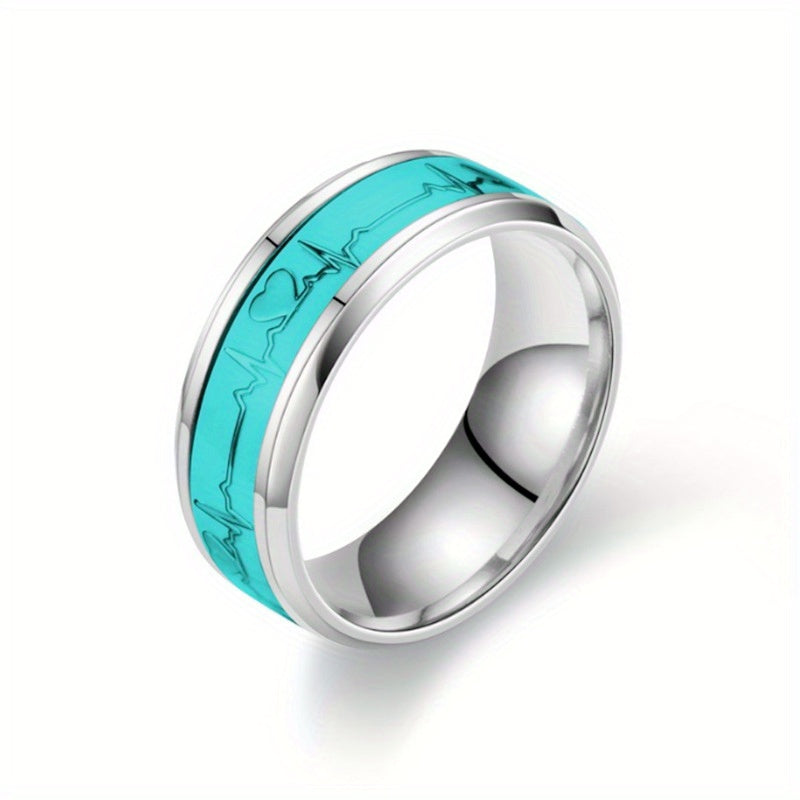 This unique heart-shaped titanium steel ring glows in the dark, making it a perfect couple's accessory. The latest addition to your jewelry collection.