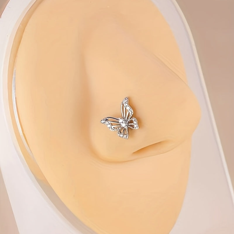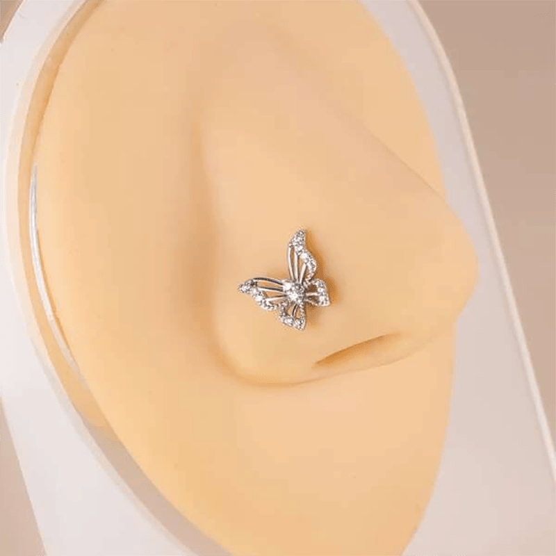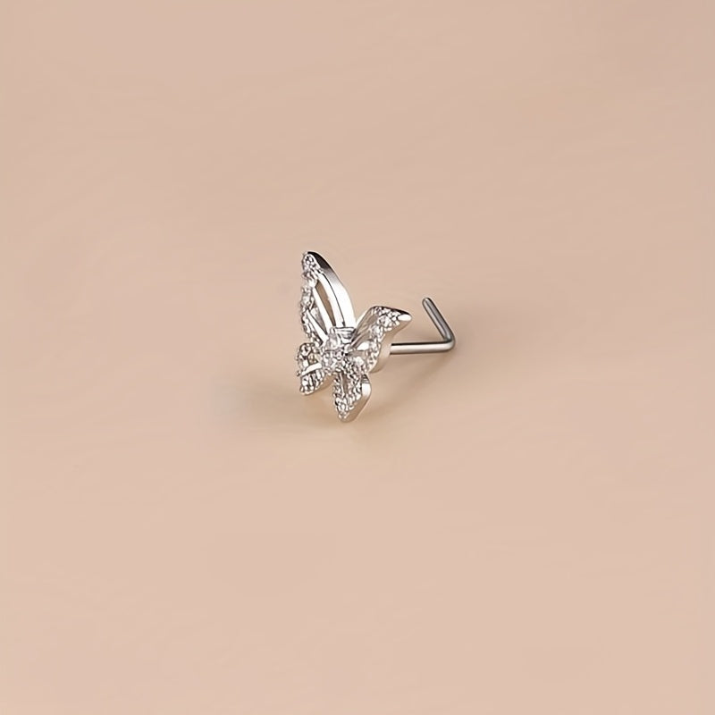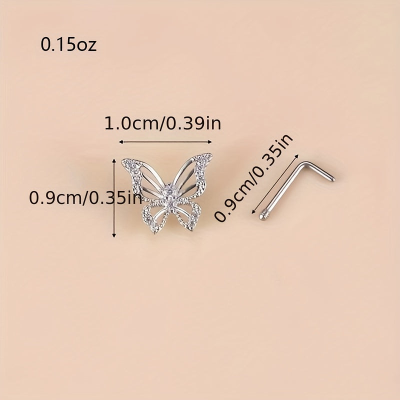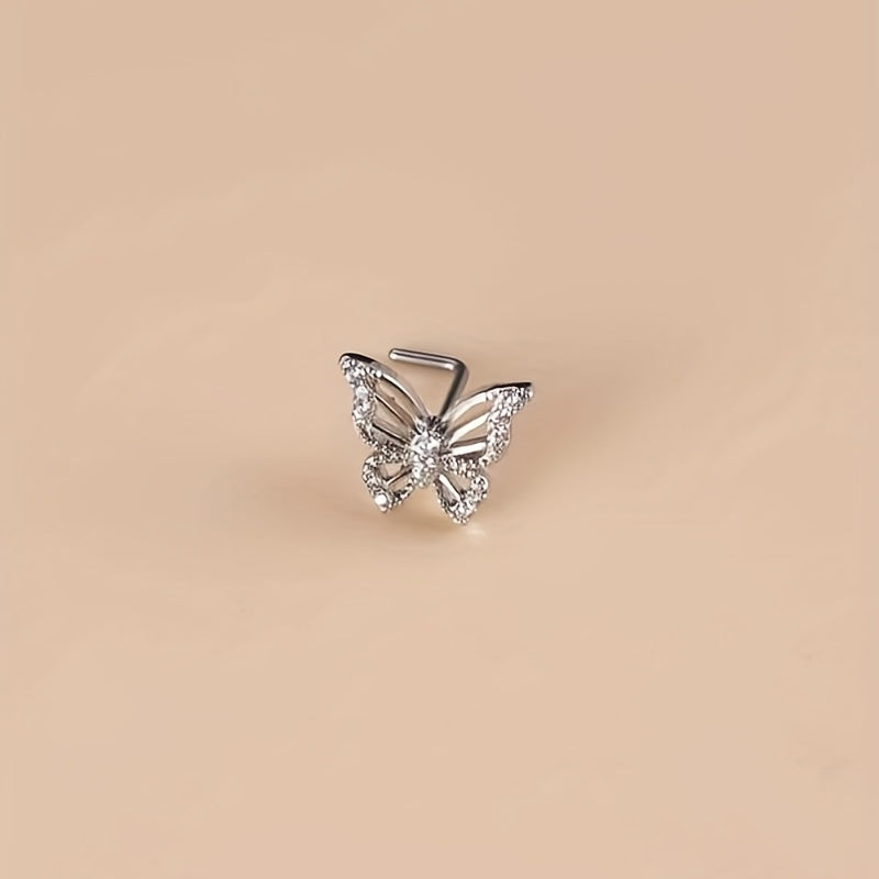 This beautiful nose ring features a hollow butterfly shape inlaid with sparkling zircon. It is an L-shaped nose stud that adds a touch of elegance to your look.
