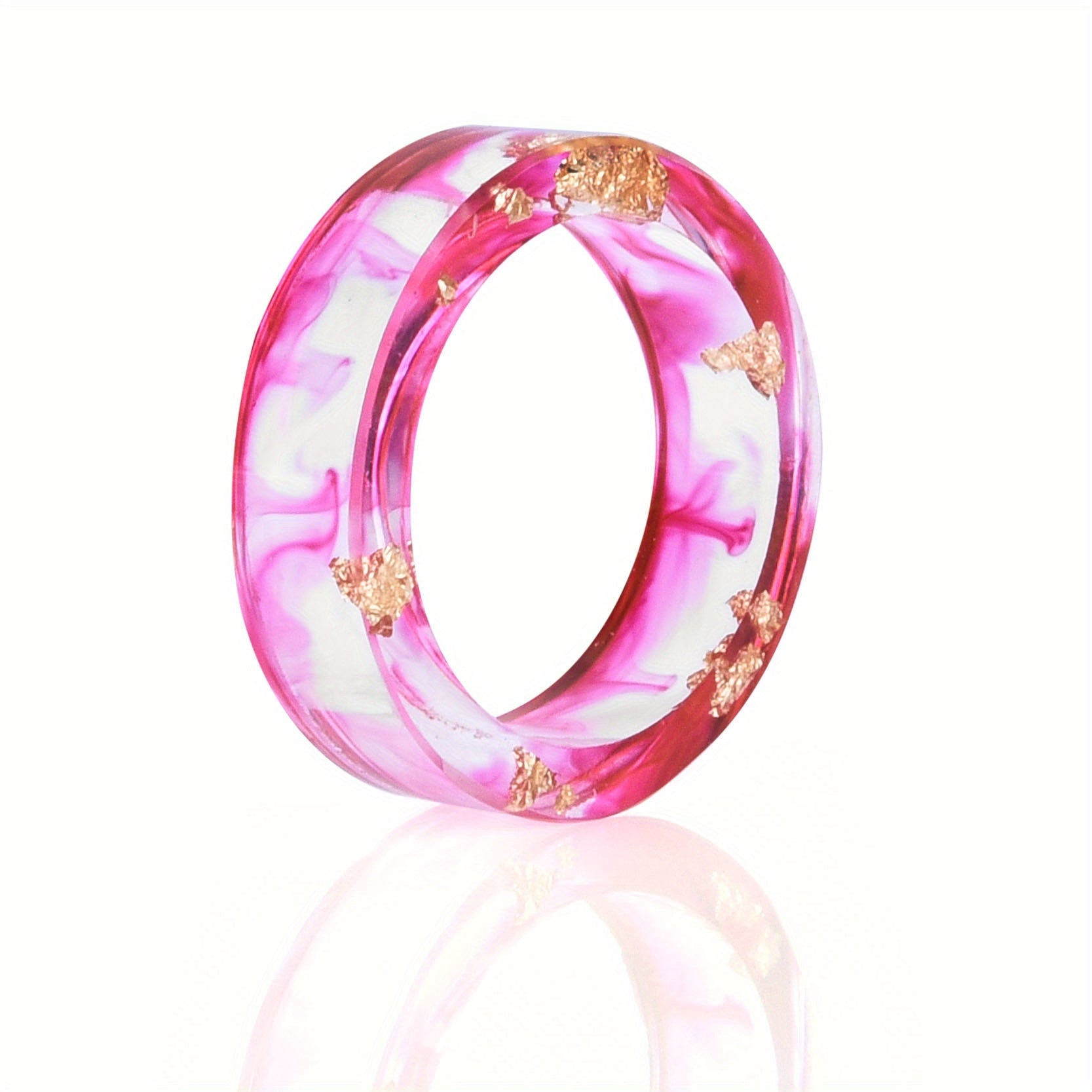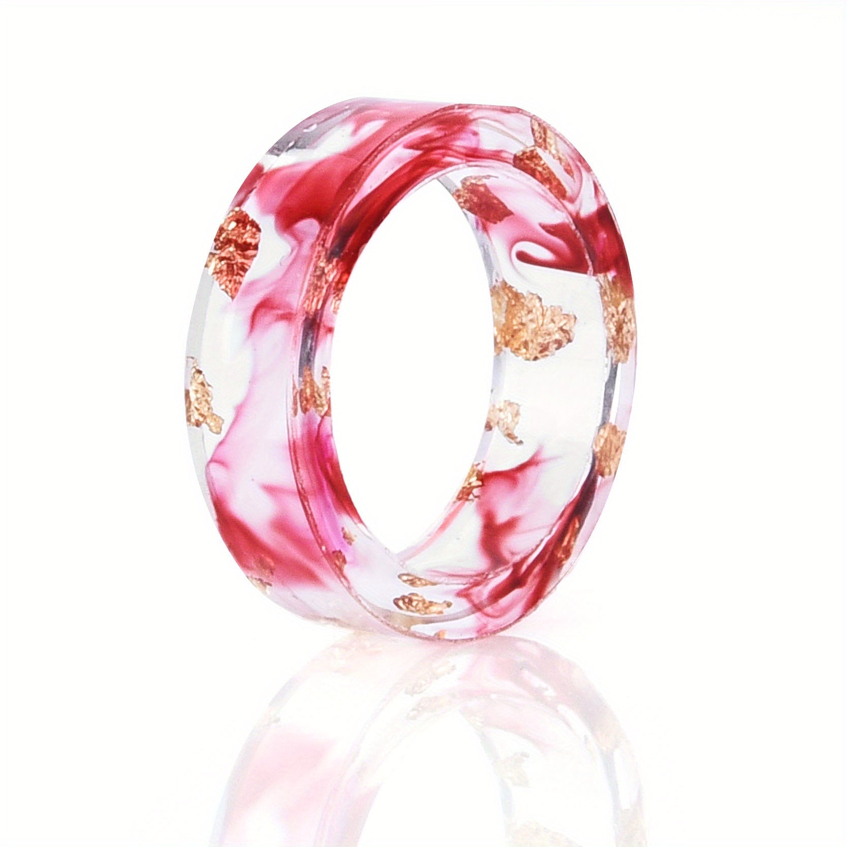 This stunning ring features a gradient transparent acrylic resin band with dried flowers encapsulated in an ink painting style. Perfect for weddings or anniversaries.