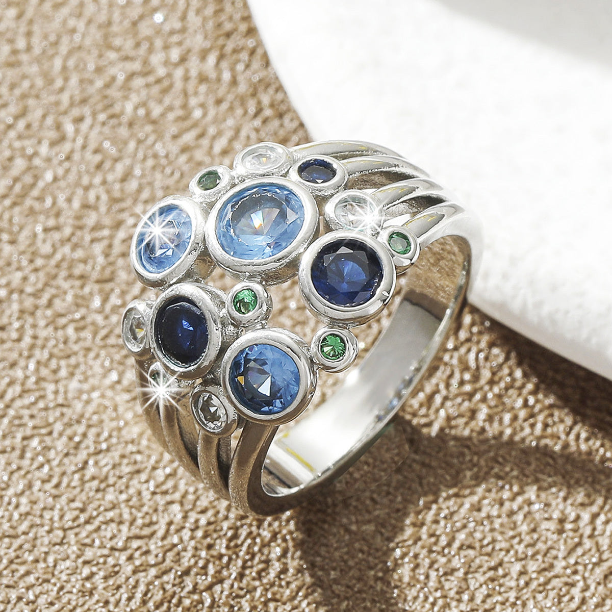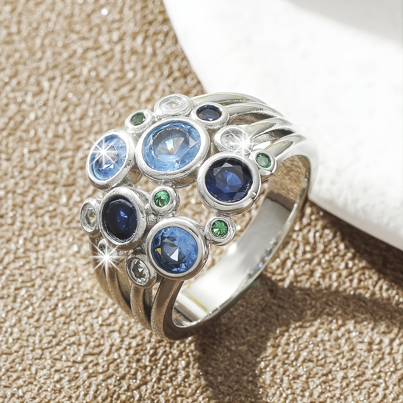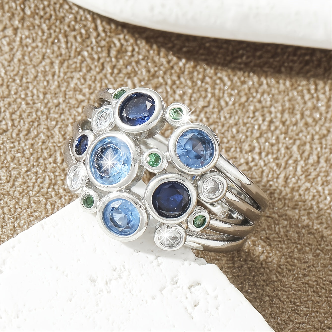 This elegant Pompomy Large Layered Glass Zircon Ring is a perfect gift for girls, women, girlfriends, and wives. Made with high-quality glass zircon, this ring adds a touch of sophistication to any outfit.