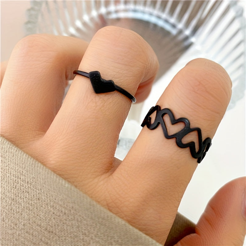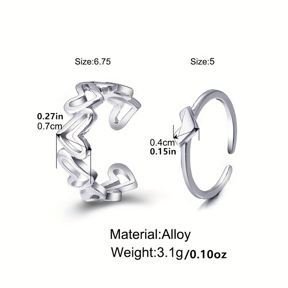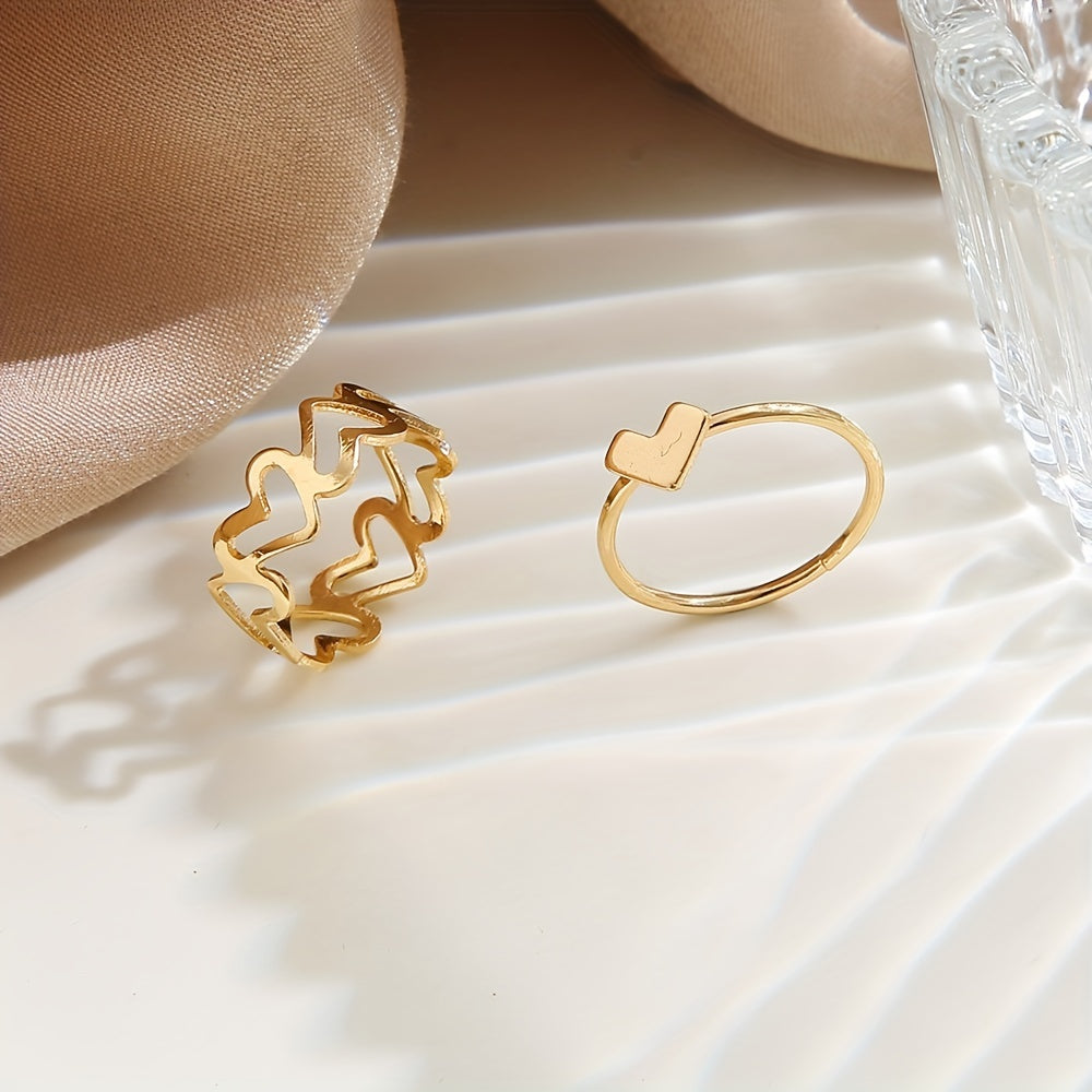 This 2pc love joint ring set features a hollowed out design with a smooth metal finish. It is a unisex jewelry piece perfect as a gift for your loved one.