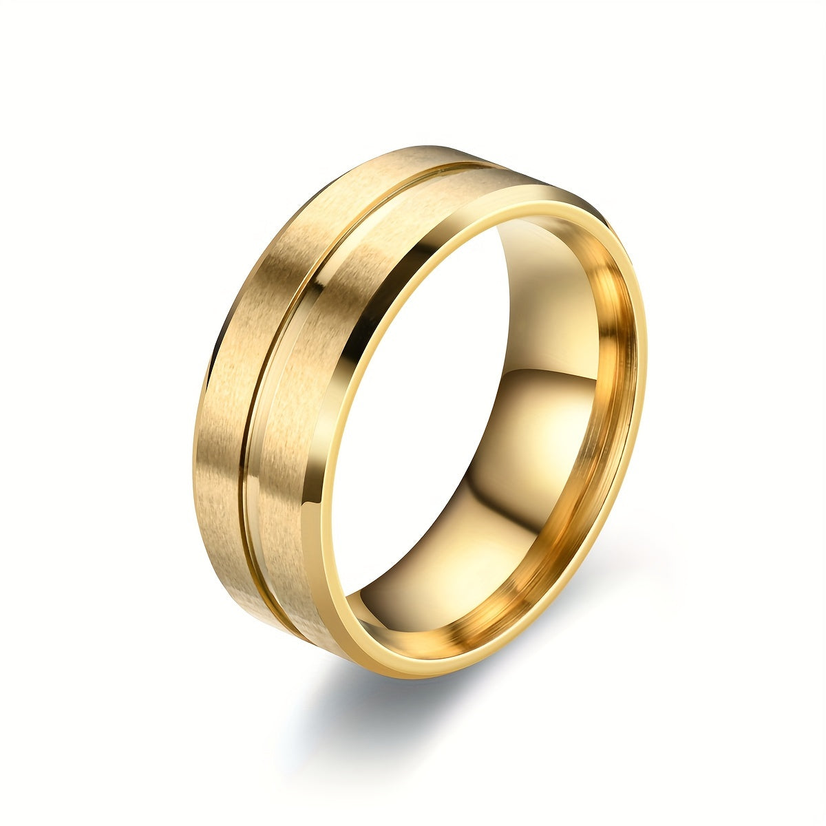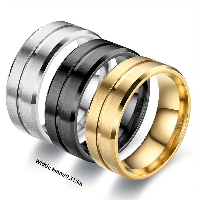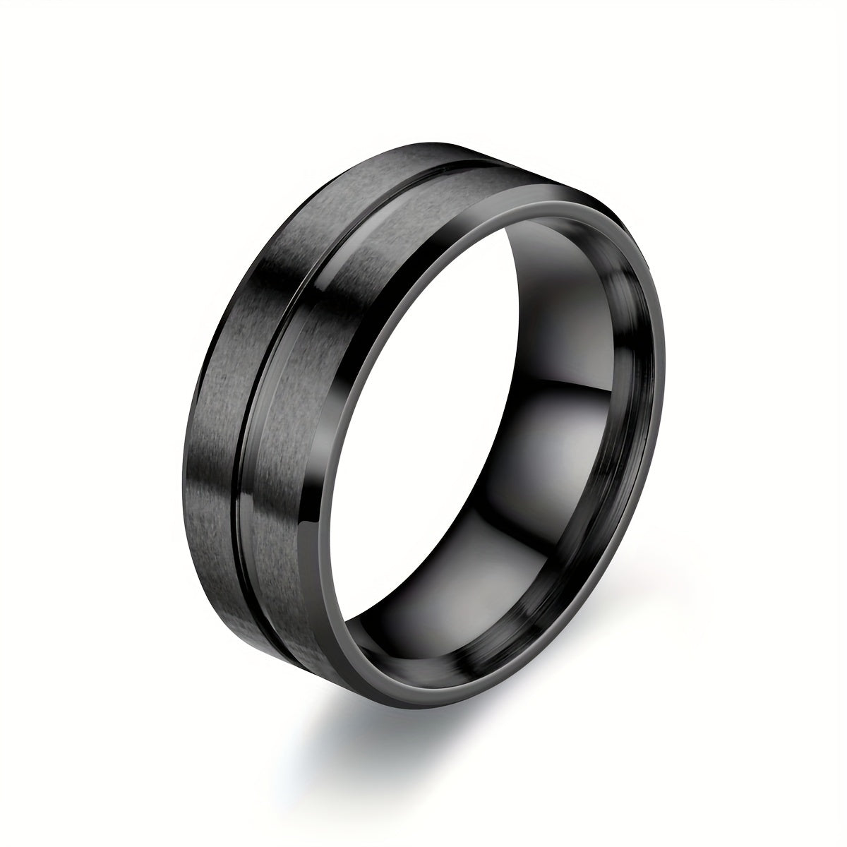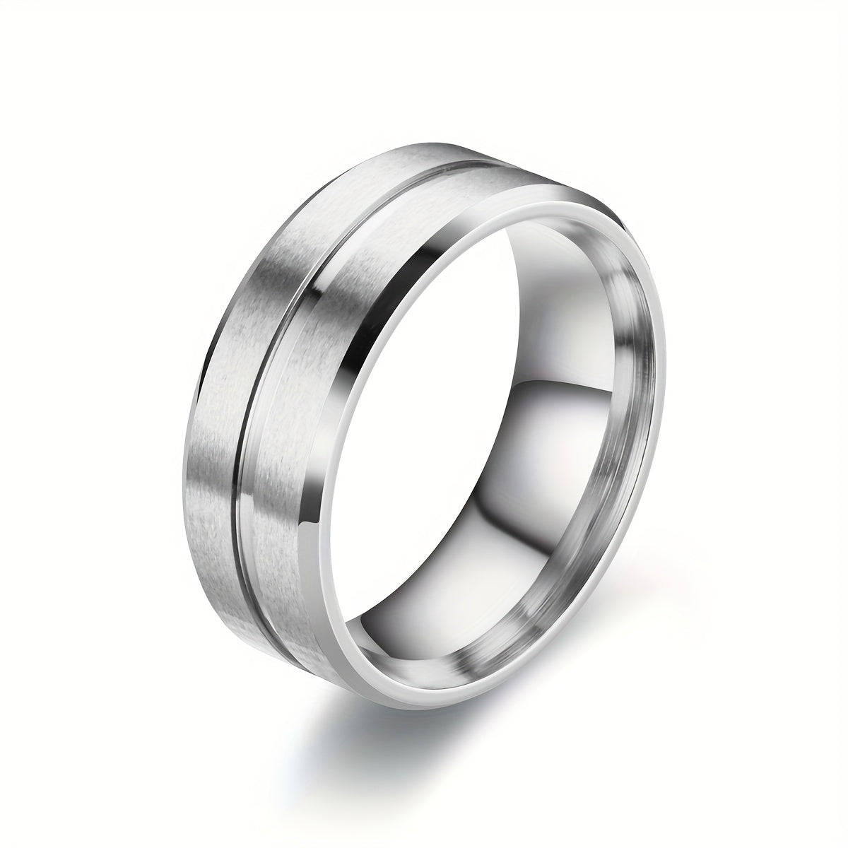 This stylish ring is perfect for couples. It features a matte brushed finish with grooves and is made of durable stainless steel.