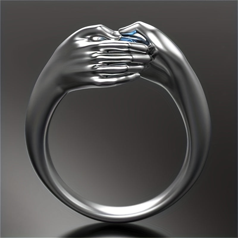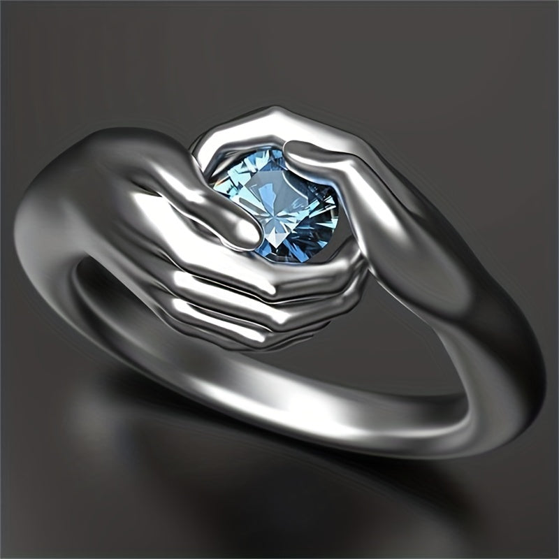 This handsome ring features a unique design with aquamarine stone. Perfect for couples seeking a meaningful symbol of love and protection.