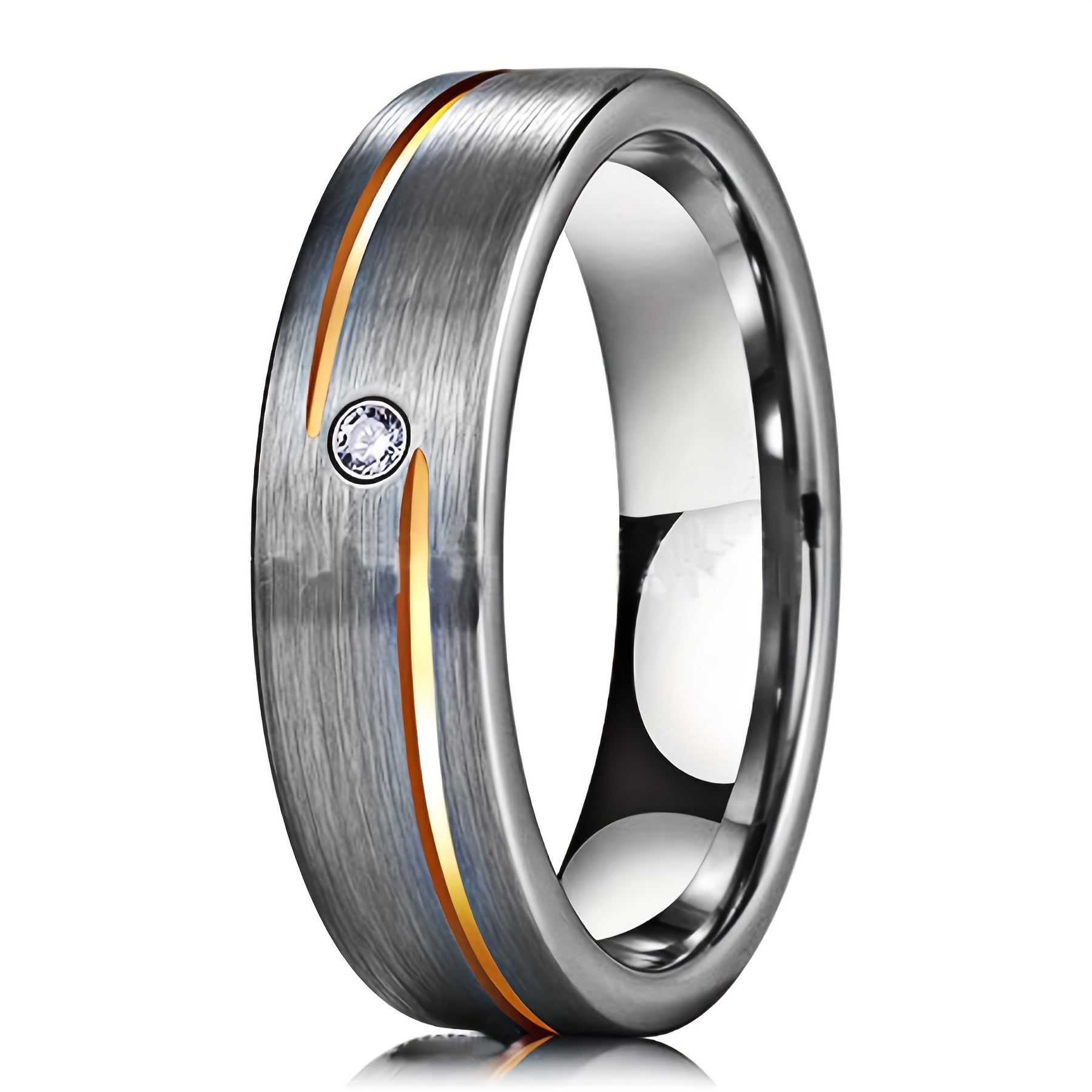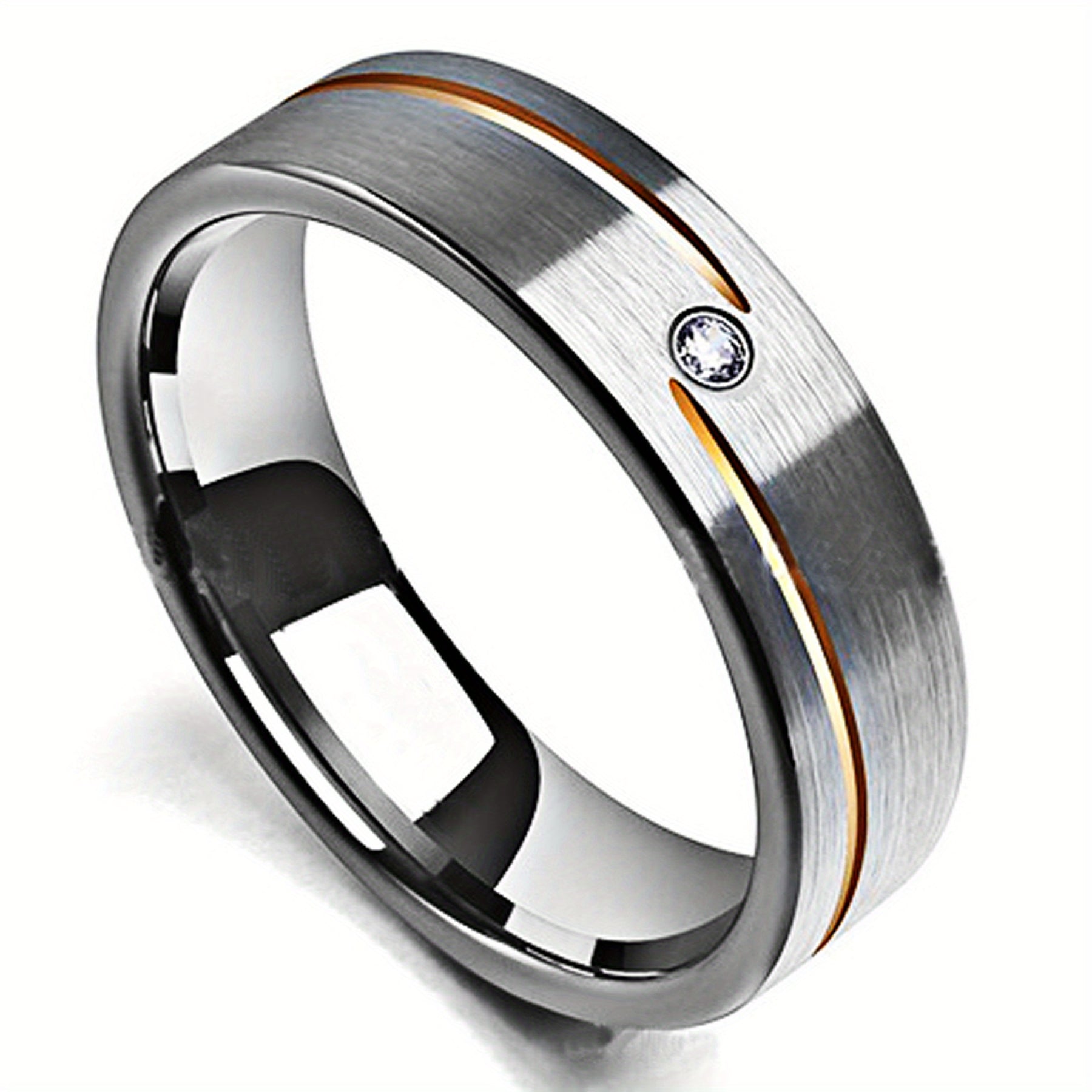 Men's Crystal Band Ring Stainless Steel Grooved Line Diamond Rings Size 6-13