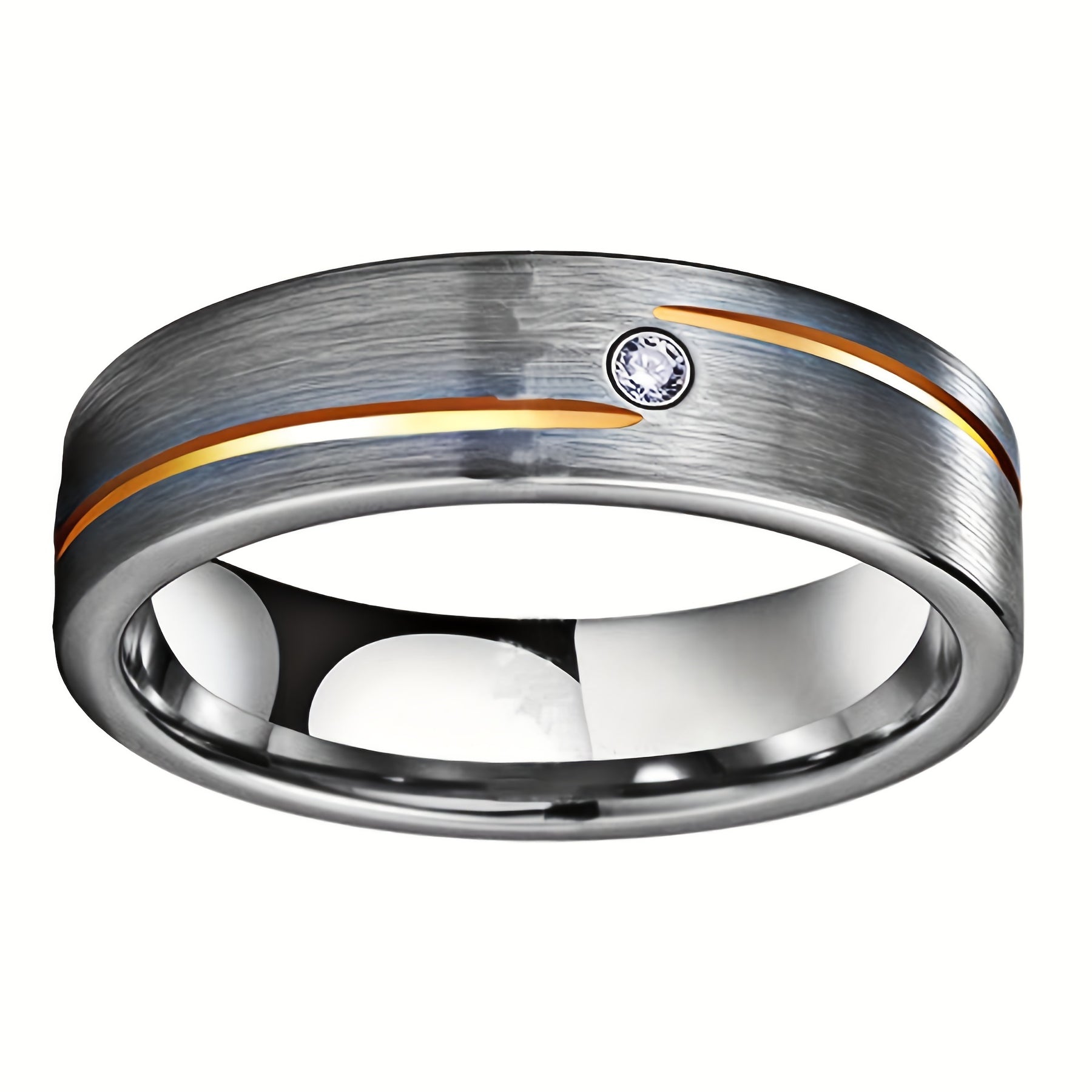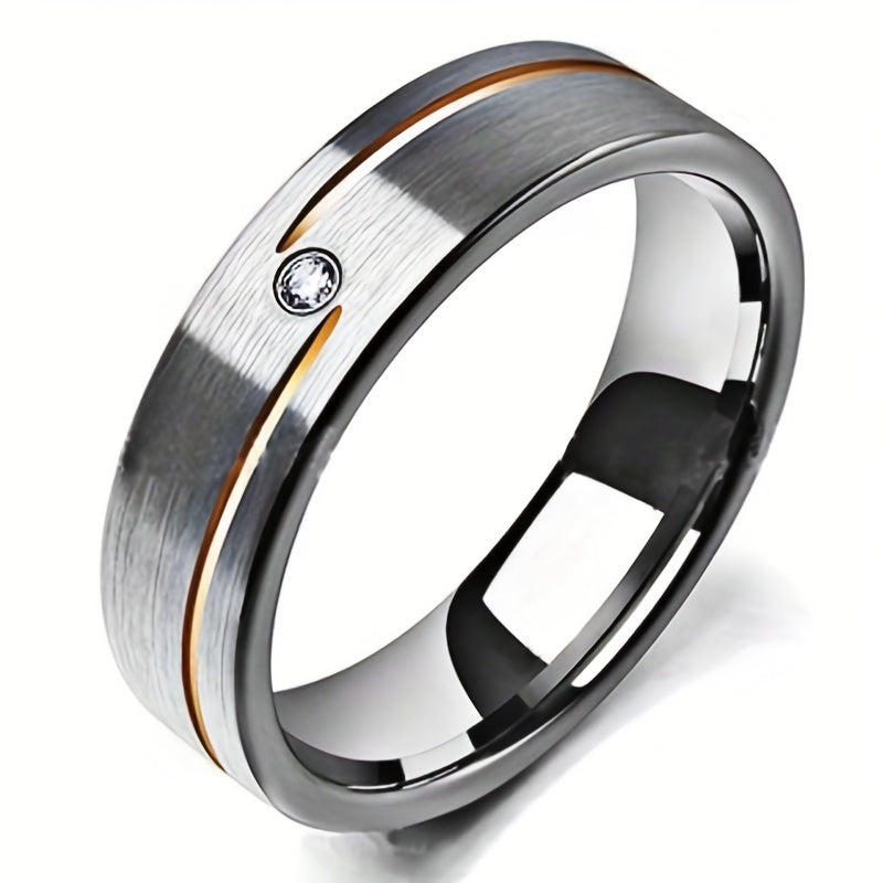 This stylish band ring for men features a grooved line design with crystals and diamonds for an elegant look. Perfect for anniversary or special occasions.