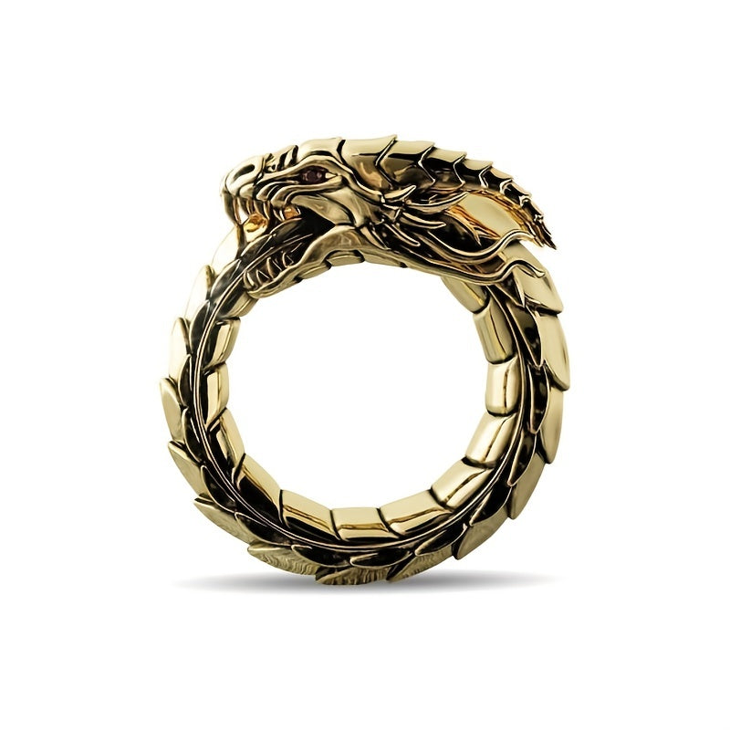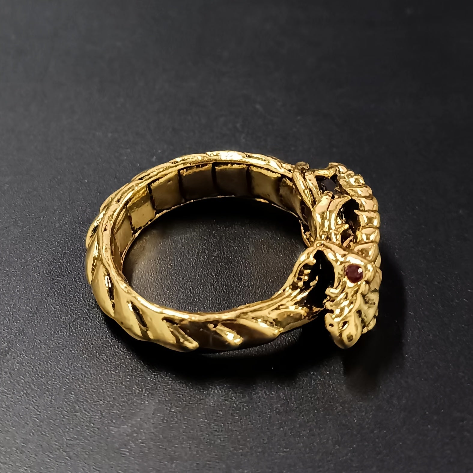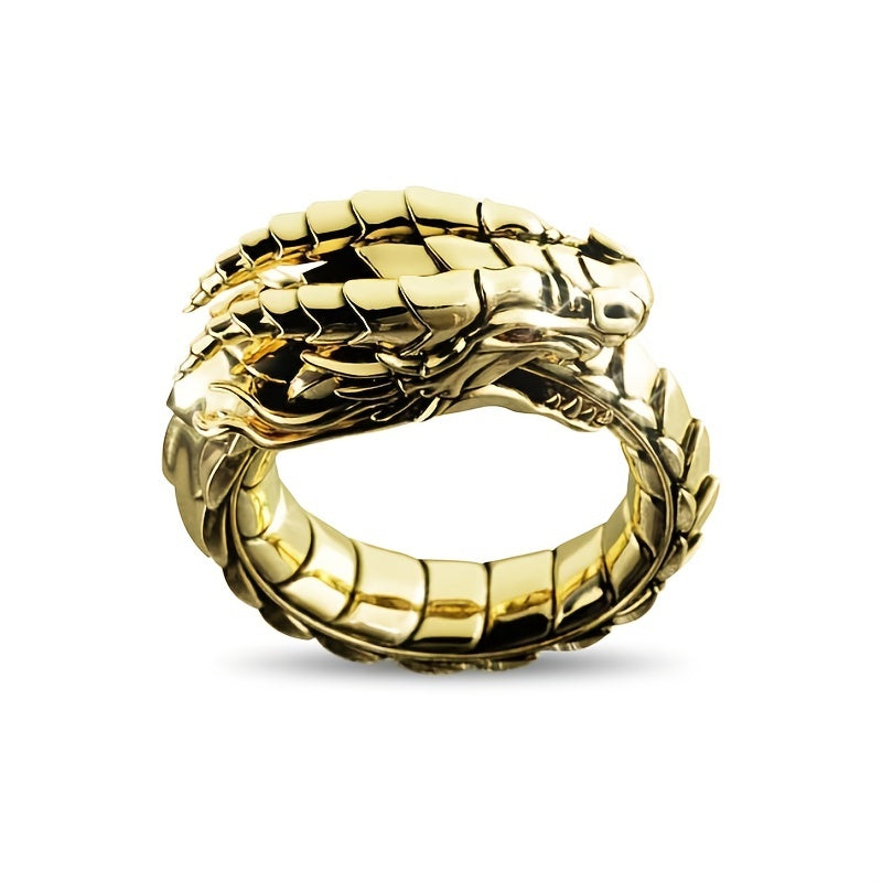 This men's dragon finger ring set features a golden alloy design with zircon stones. Perfect for couples or as a gift. Add a touch of style to your outfit with this unique jewelry piece.