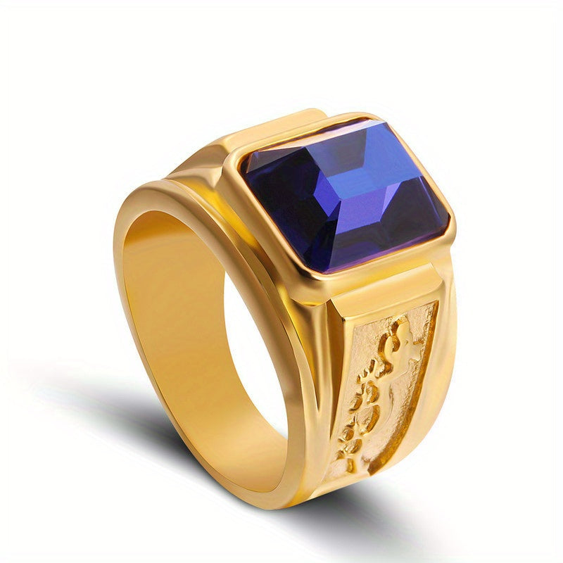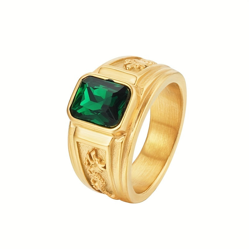 Enhance your business casual look with this vintage style square ring featuring a dragon pattern inlay, adding a touch of sophistication to your hand jewel collection.
