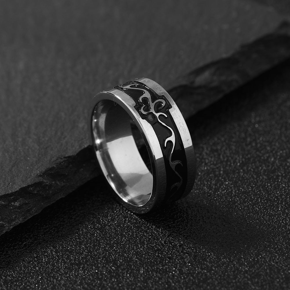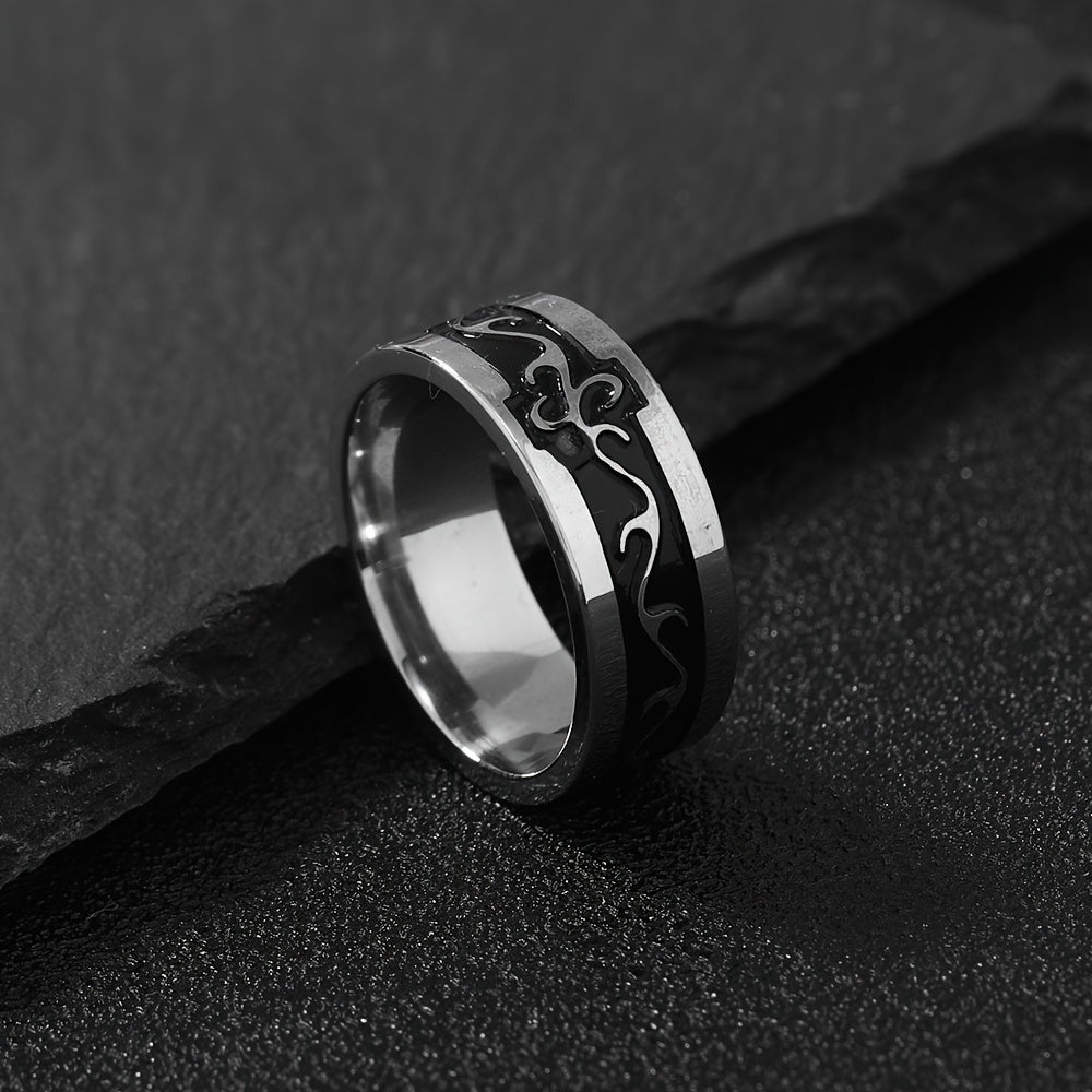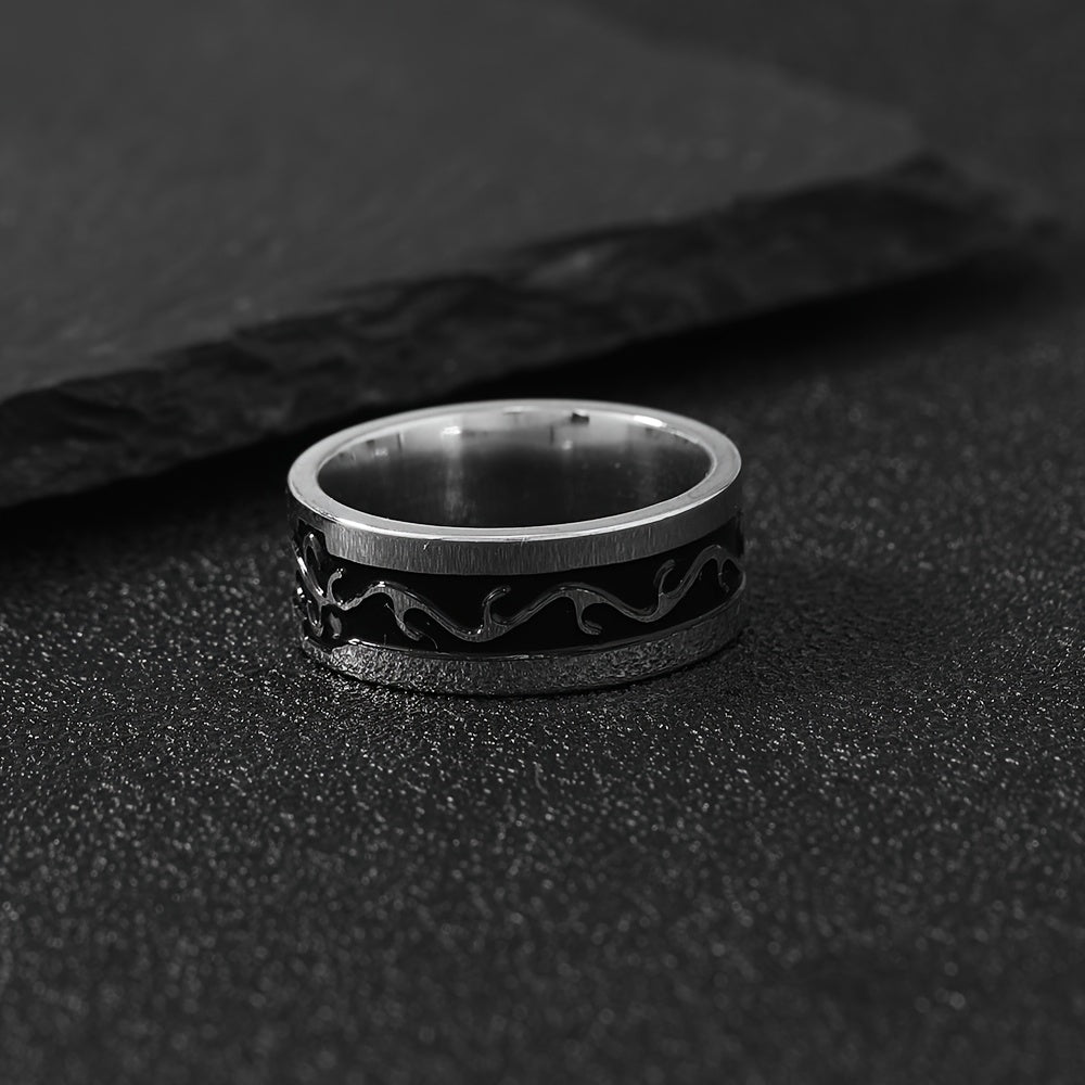 This stainless steel ring features a dragon pattern and a unique rotating design. Perfect for those who love dragon-inspired jewelry.