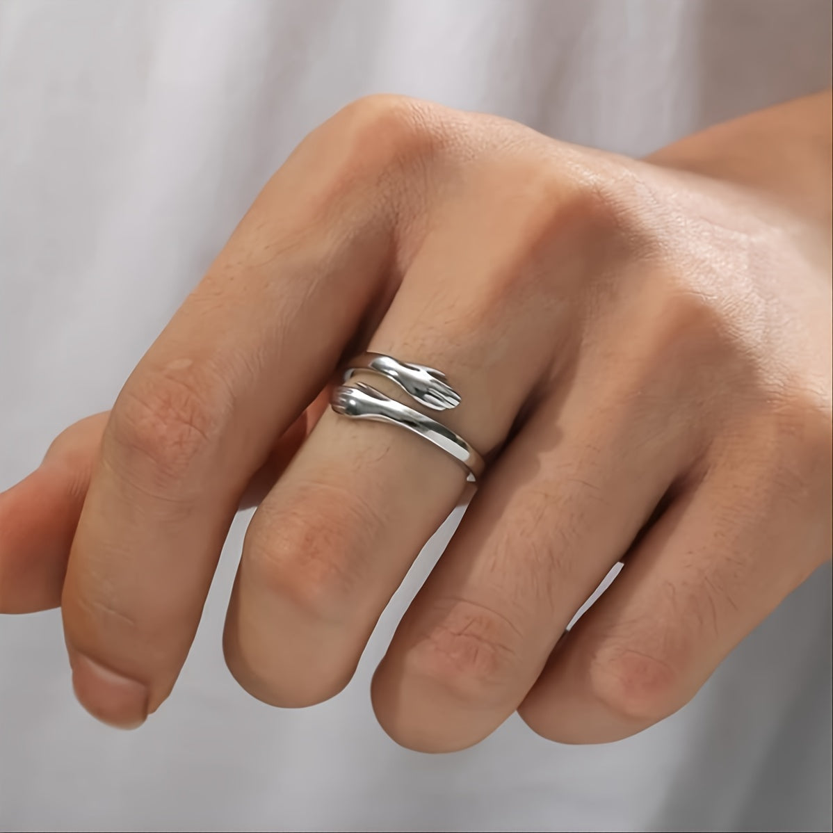 Men's Embrace Hugging Hands Shaped Ring Jewelry Accessory Gift