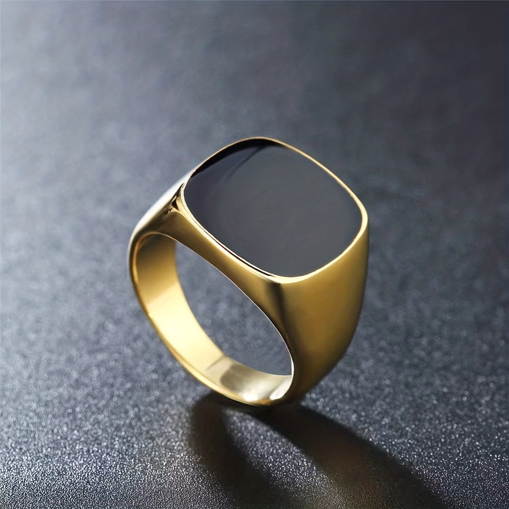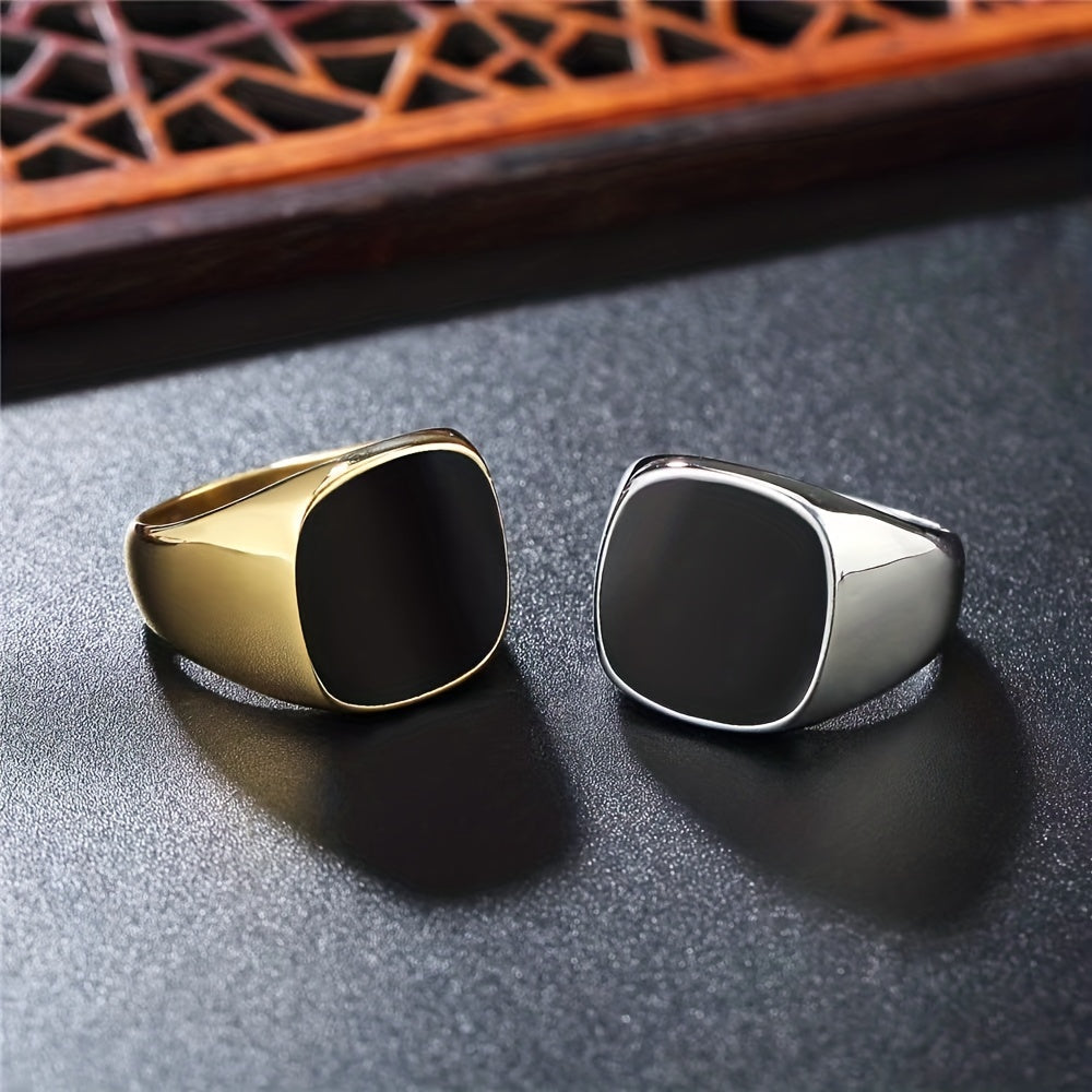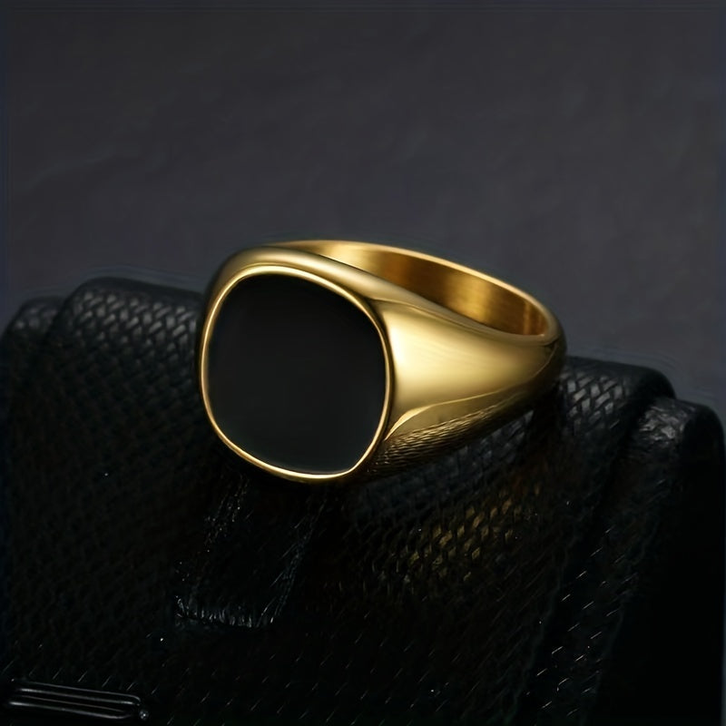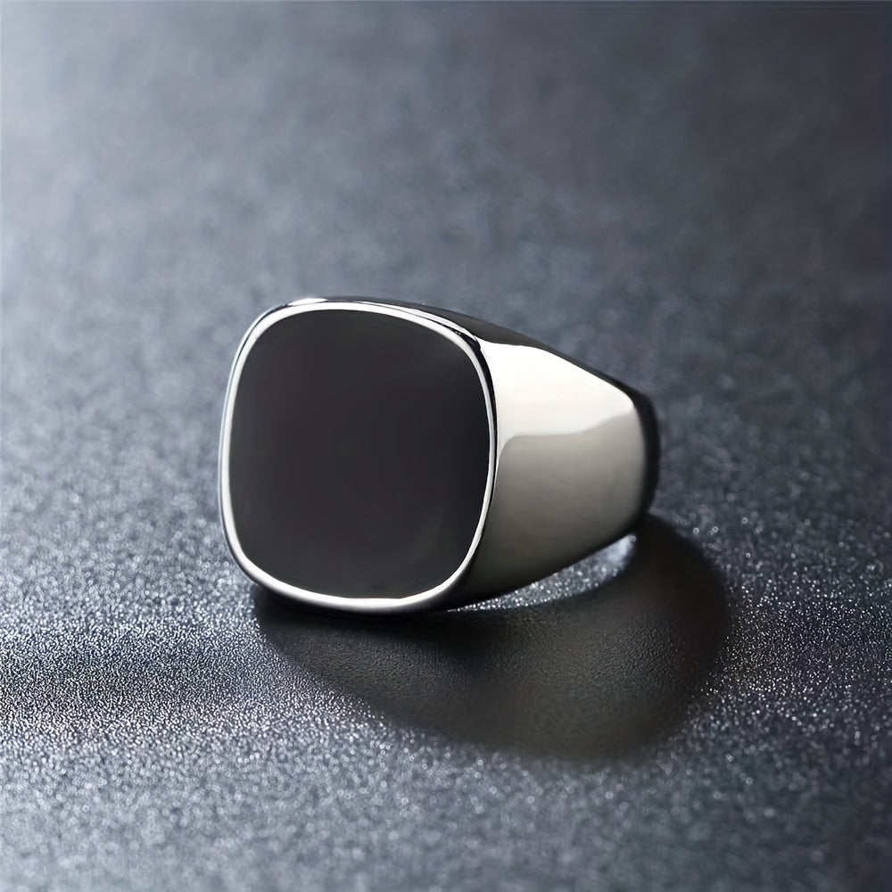 Elevate your style with this stylish men's ring featuring a rounded square shape and enamel finish. Perfect for adding a touch of sophistication to any outfit.